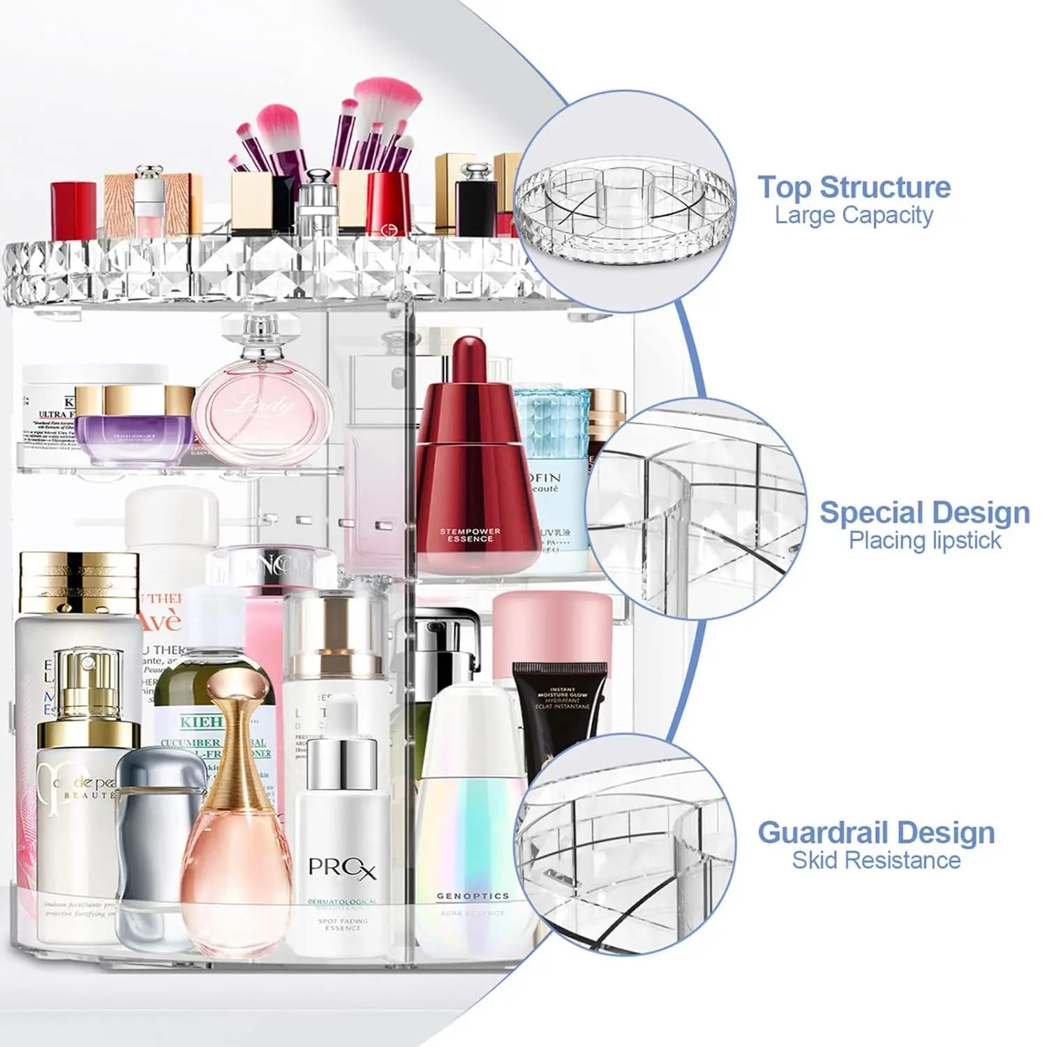 ·【360° Rotating Design】The sturdy base of this makeup organizer ensures your cosmetics stay securely in place while you spin it, making it easy to find exactly what you need
