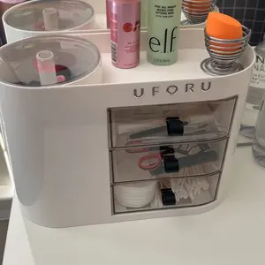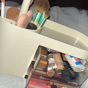 I really love this organizer! It fits all my makeup perfectly and keeps everything looking neat and easy to reach. The drawers slide smoothly, the top section holds my brushes and products without feeling crowded, and it honestly makes my whole space look cuter.