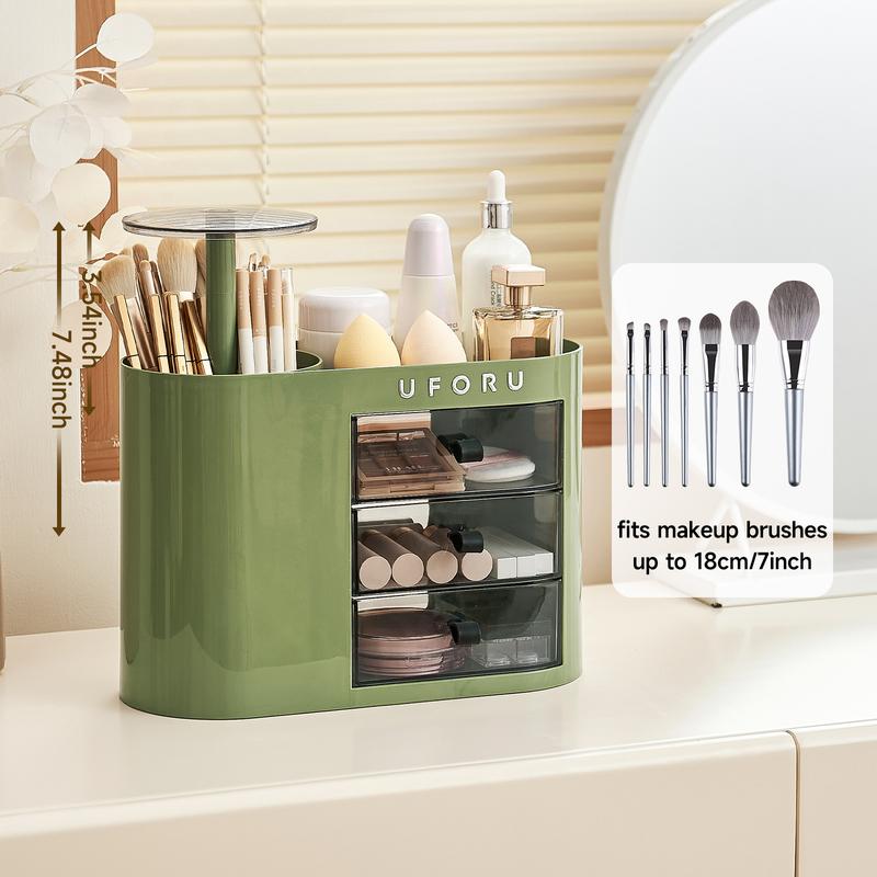 I love this makeup organizer! It keeps everything neatly arranged and it protects my brushes from dust, which is a big plus for me. The design is cute, sturdy, and doesn’t take up too much space on my vanity. Highly recommend!