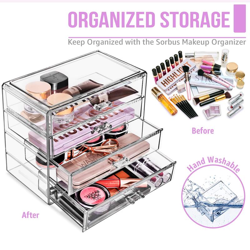 5. Sorbus Durable Plastic Makeup Storage Case with 4 Drawers, Easy Grip Handles, Suitable for Most Tabletop Beauty Products & Cosmetics - Removable Sliding Clear