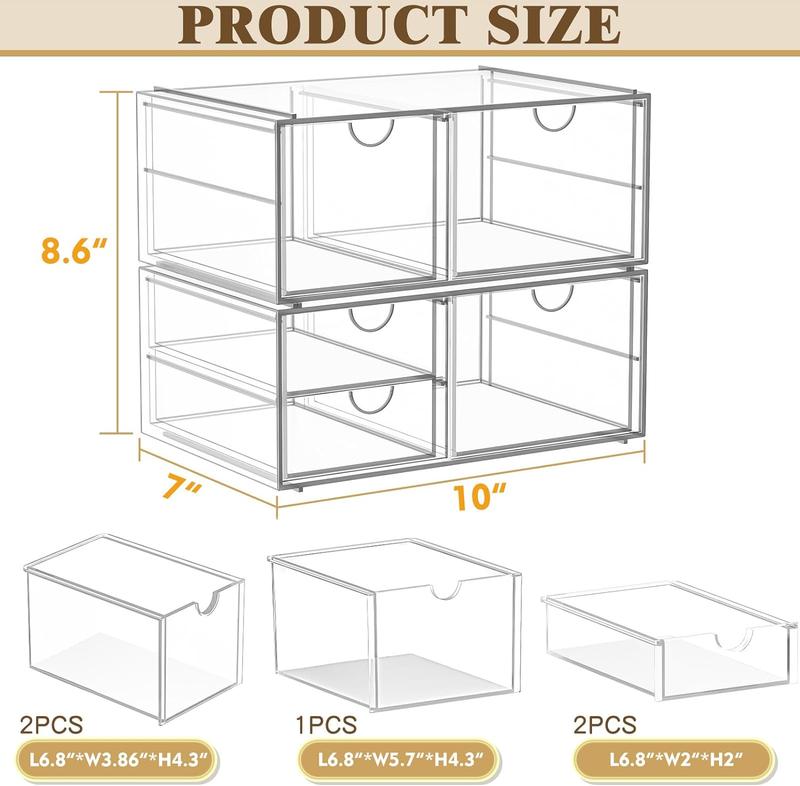7CODE Makeup Organzier with 5 Drawers, Clear Stackable Storage Drawers, Bathroom Countert Organizer,Plastic Storage Bins For Makeup, Vanity, Cabinets, Pantry, Home Organization and Storage