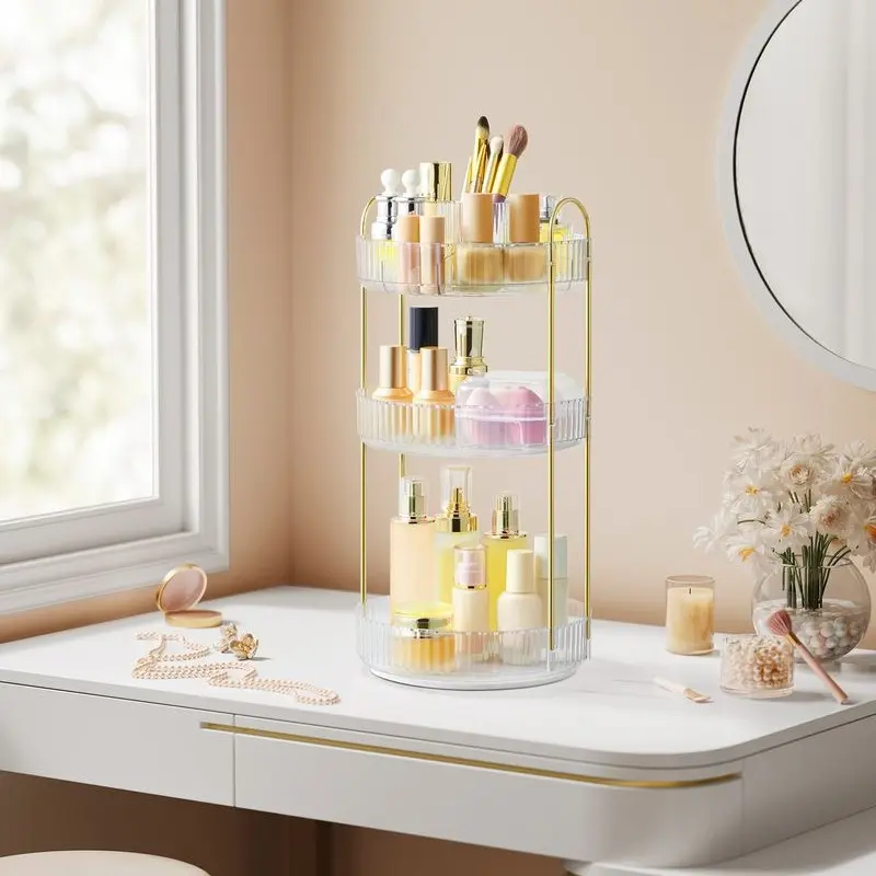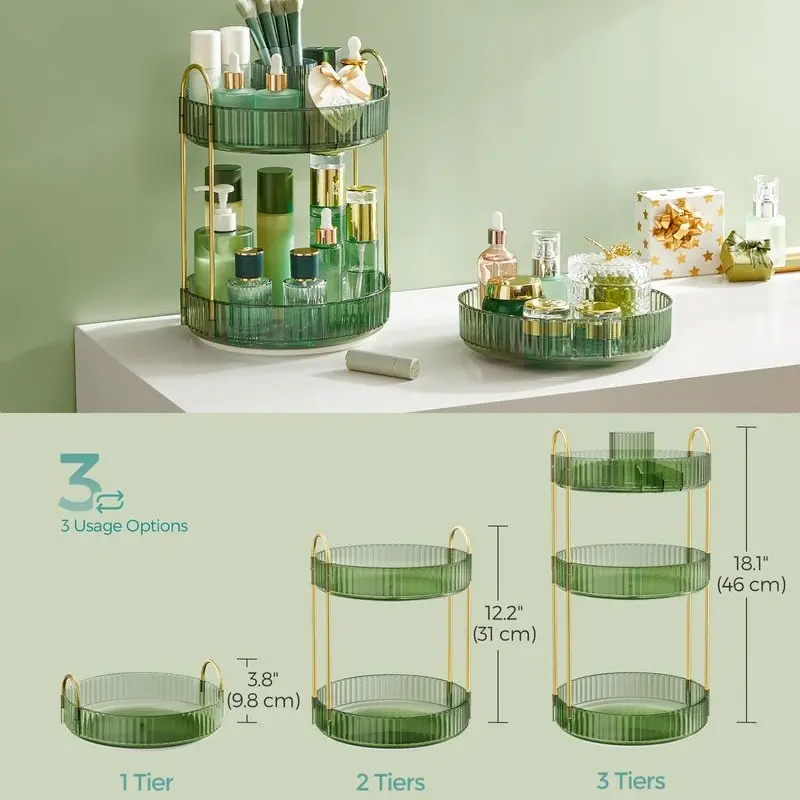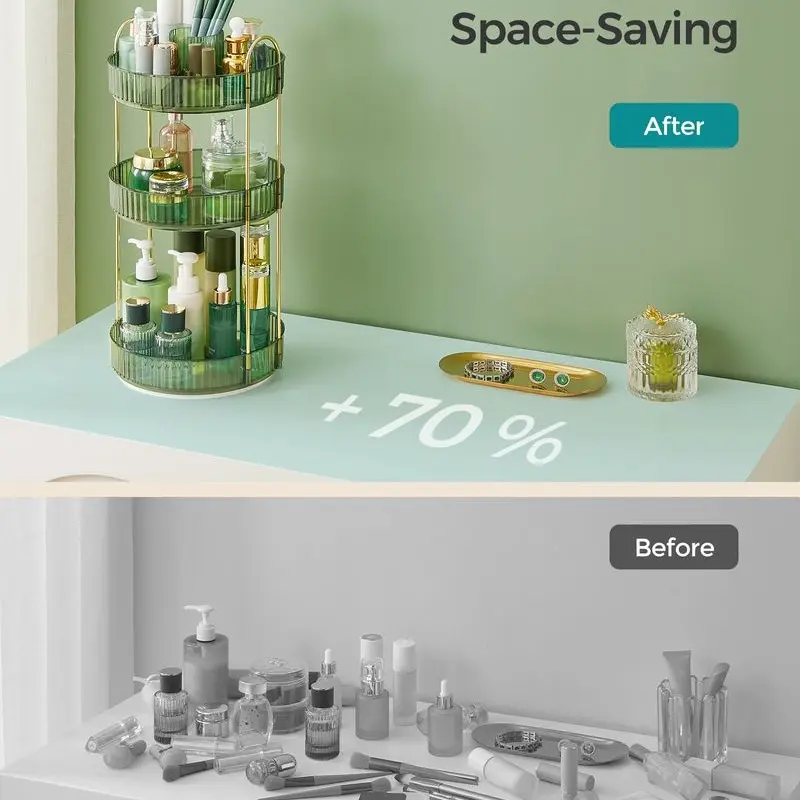 ·360° rotating: Offers effortless access to a variety of cosmetics and makeup tools.