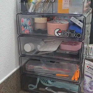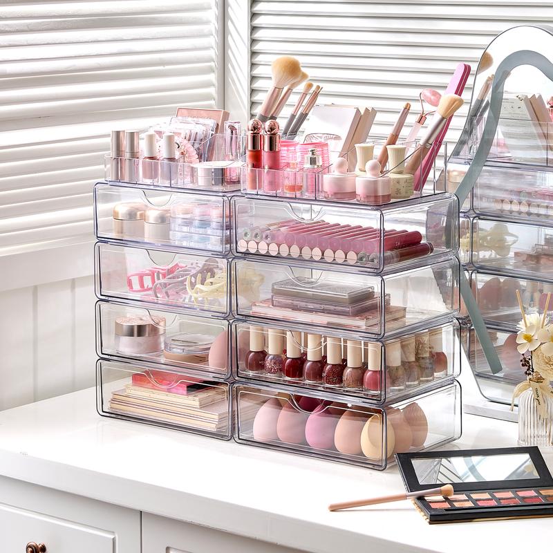 ·Modular & Spacious Design for Flexible Makeup Storage:This customizable organizer features a top tray with multiple open compartments and stackable drawer units that can be combined as needed. Whether you need one drawer or a full tower, it adapts to your space and storage needs—perfect for organizing everything from lipsticks and brushes to palettes and skincare.