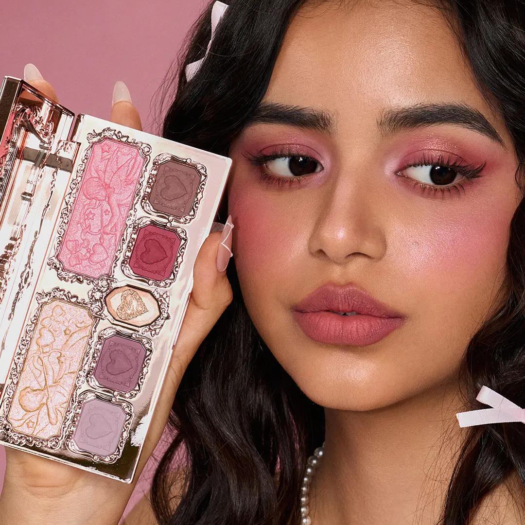 #02 Cupid's Mischief - Romantic Pinks "Fall in love with Cupid's Mischief. Five velvety mattes, from sweet baby pink to bold hot pink, plus two shimmering shades—rose gold and light pink—for a playful, radiant look.