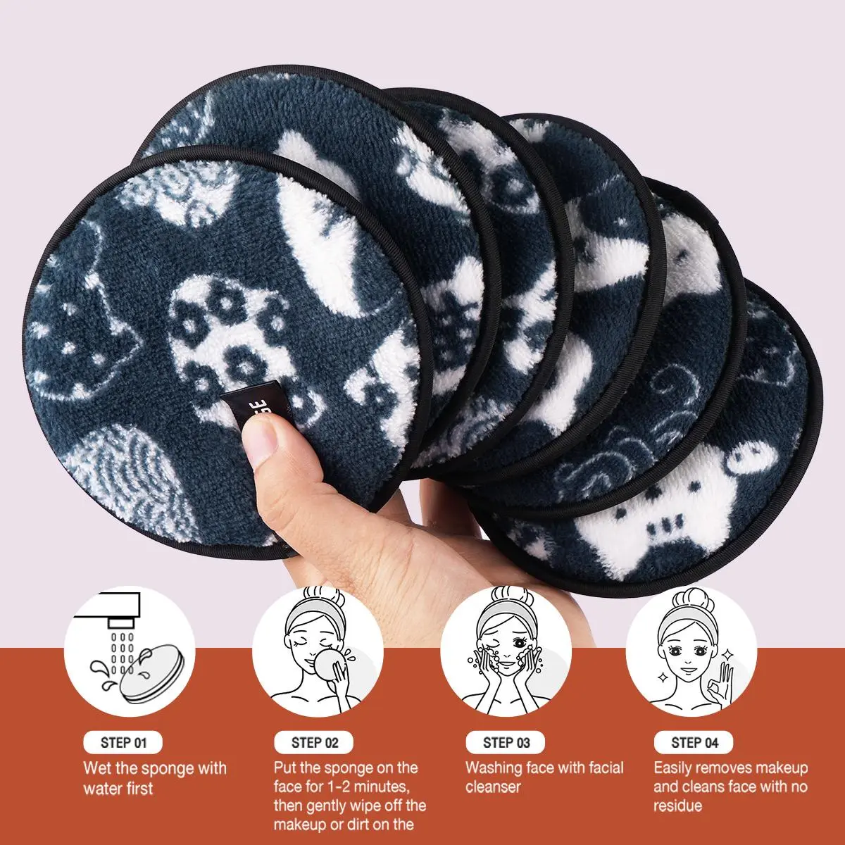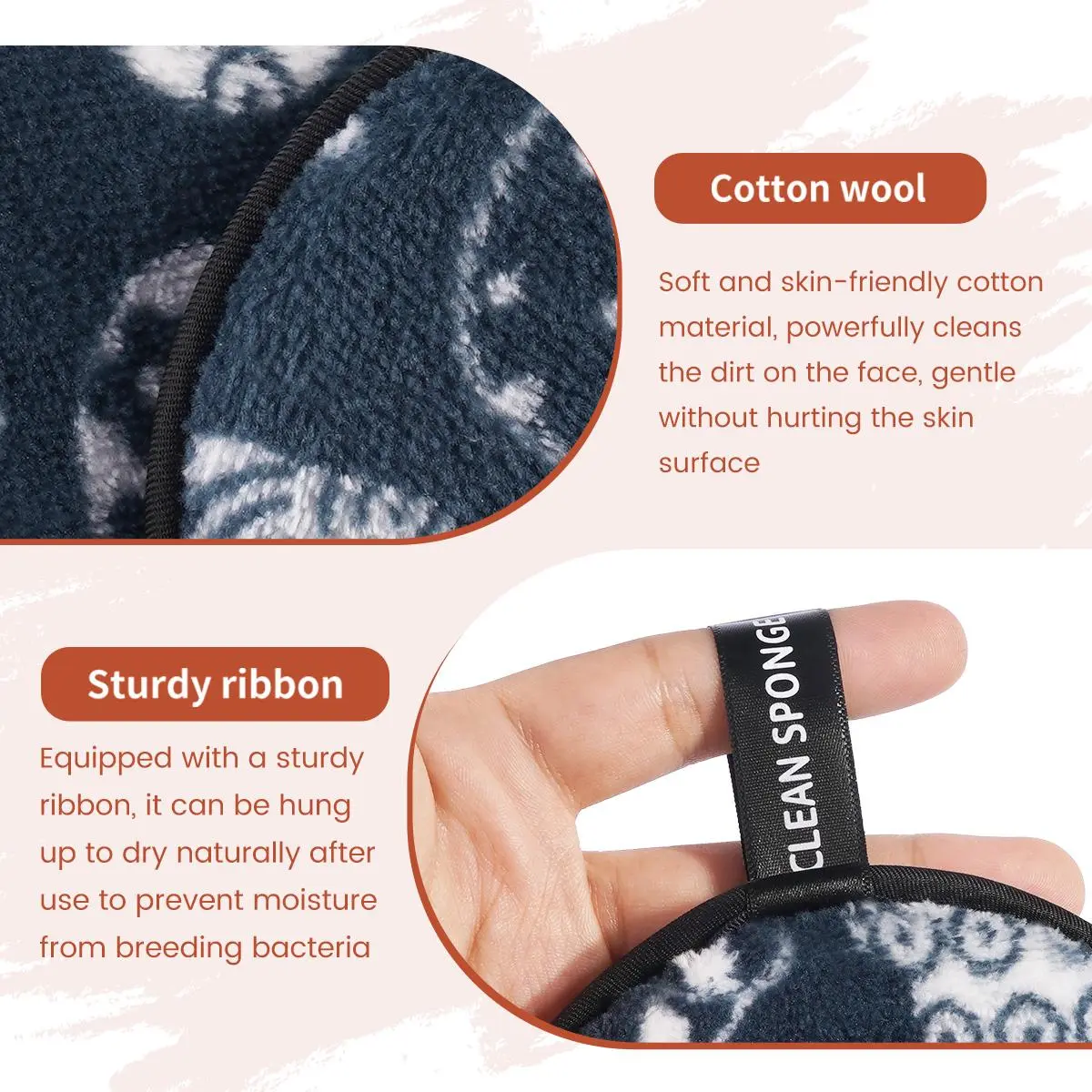5. Makeup Remover Powder Puff, 6 Counts/set Reusable & Washable Makeup Remover Puff, Facial Cleansing Puff, Facial Skin Care Tool for Women