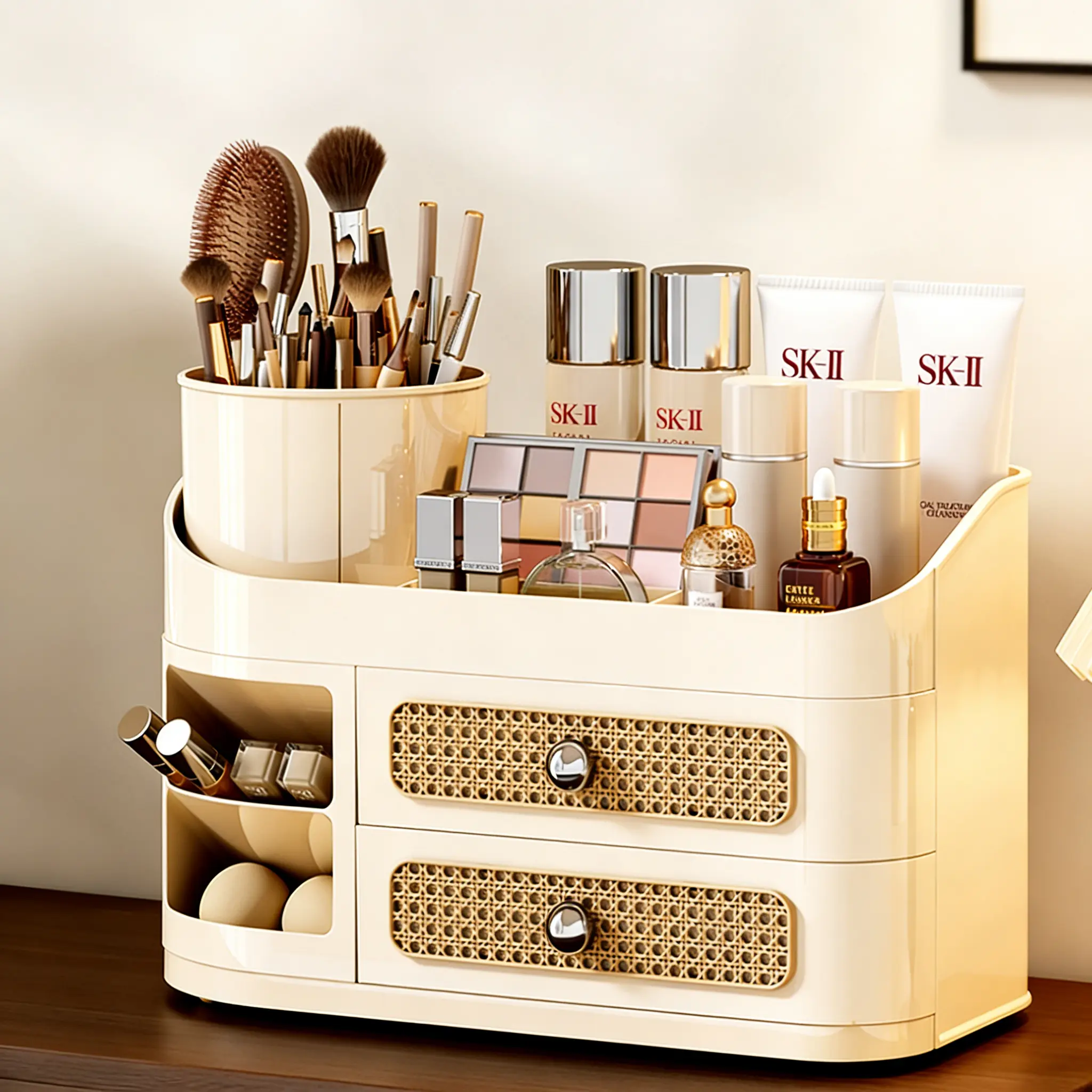 ·【Efficient Storage】This versatile organizer is perfect for storing a wide array of makeup products, from lipsticks to brushes. Its thoughtful design effortlessly accommodates different items, keeping everything neatly in place and easy to access.