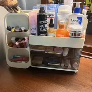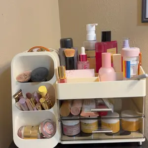 Love this organizer. I have all my skincare organized perfectly on my bathroom counter and it no longer takes over my husbands side of the bathroom anymore. I also love the drawers for lip masks, sheet masks, and smaller items.