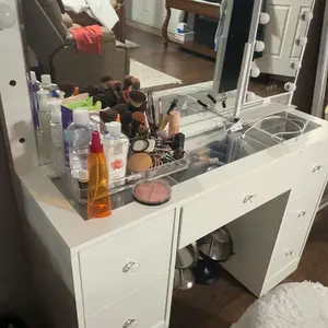 Get the vanity !!! Itâs so nice , it took me a while to build js bc I built it alone but I would recommend 2 ppl. Over all the drawer space can fit a good amount of things the material is good not cheap and overall definitely recommend.