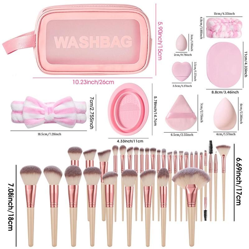 Great quality so many brushes! Love the beauty blenders! Perfect size wash bag love the bubblegum pink color!