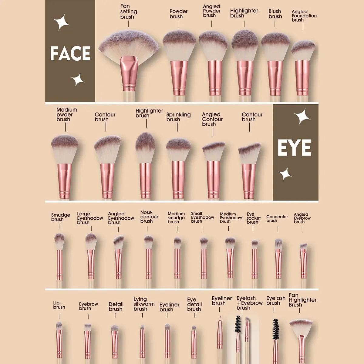 【Diverse Brush Selection】: Equipped with a range of brushes in various shapes and sizes, this set is designed to handle any makeup application with precision, from eyes to face and everything in between.