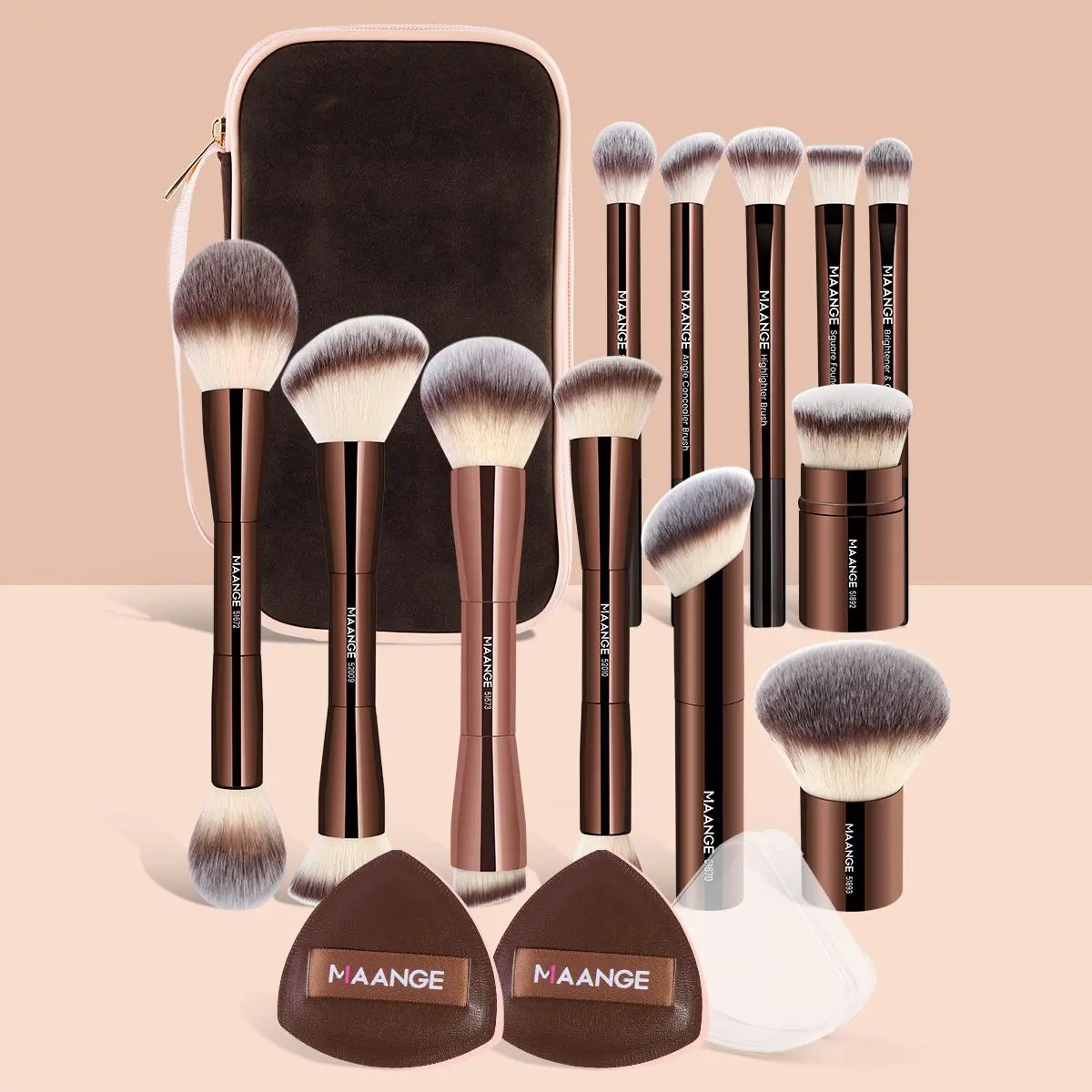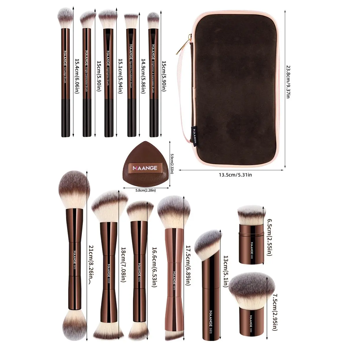【Comprehensive Set】: This set includes 15 pieces, featuring 12 aluminum tube makeup brushes, 2 air cushion puffs, and a makeup bag, ensuring all your beauty needs are met.