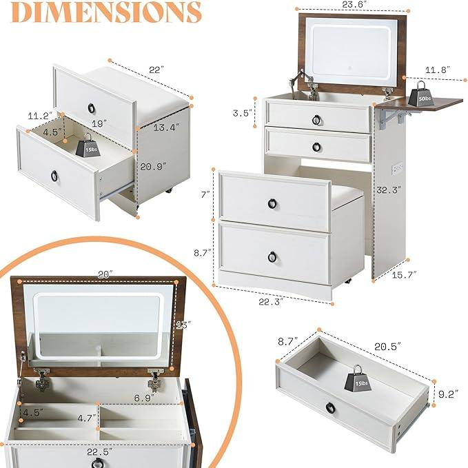 [Versatile 3-in-1] Transform your space with our vanity table set that serves as a vanity, nightstand, and storage unit. When closed, it's a compact dresser; pull out the chair and flip up the top panel for a functional vanity. Ideal for small spaces