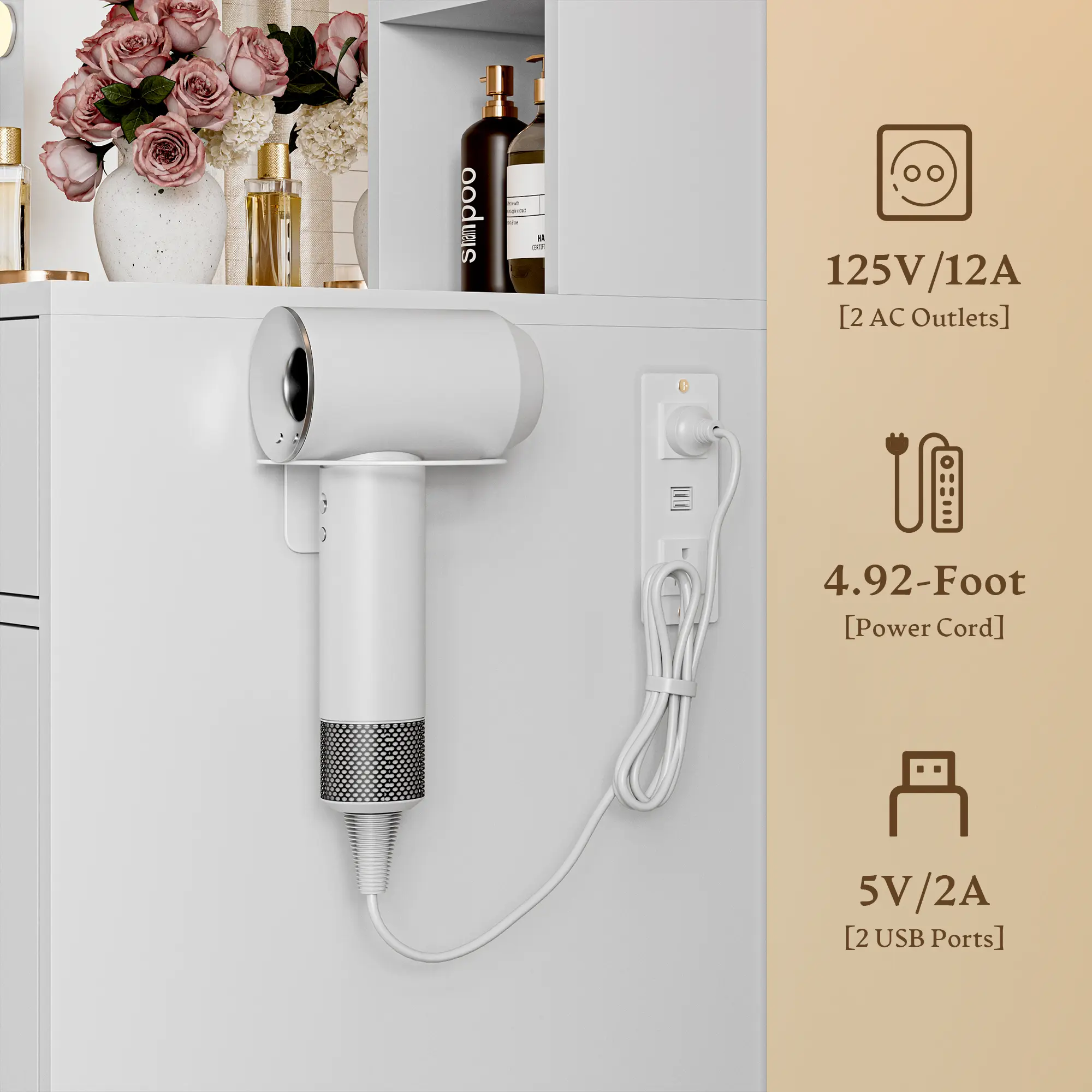 White, 15.62"D x 43.3"W x 55.9"H