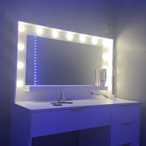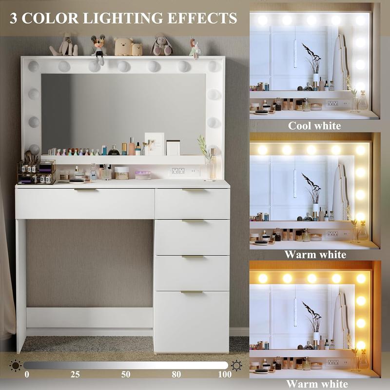 3 Lighting Modes Vanity Desk: Featuring a high-definition mirror with 13 LED Hollywood bulbs, this vanity provides a complete and flattering view from every angle. Three adjustable light modes allow you to customize brightness to suit any makeup need.