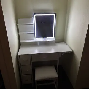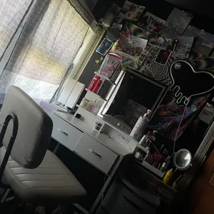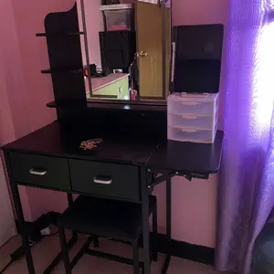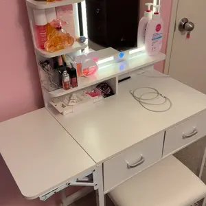 I loveeee this vanityyy it’s perfect for taking pictures or just anything in general! My room isn’t that big but this fits rlly well 🥹the only cons are probably just the putting it together part 💔it took 3 people and like 3 hours😭but overall it’s rlly good and came in 5 days I recommend!