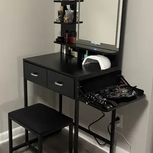 Honestly it’s super cute and fits perfectly in my room!! Definitely recommend, also love how it has the plus to charge your phone or to plug in your curler. It also come with a light us mirror with three different settings.