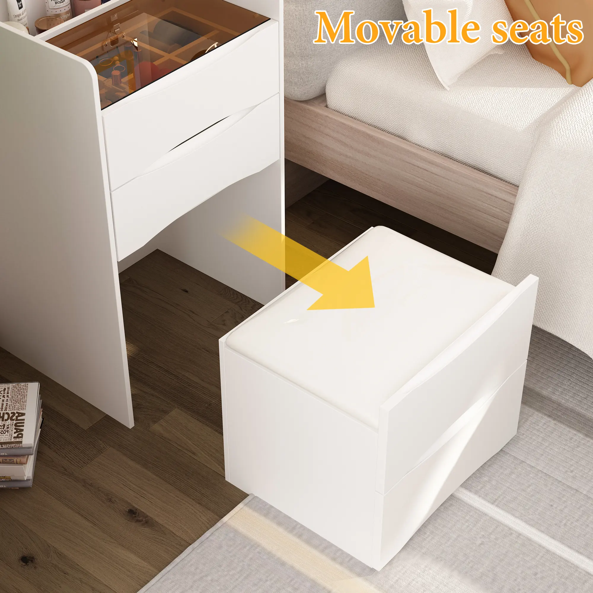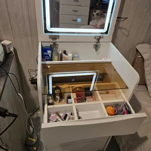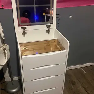cute vanity desk that is small and perfect if you don’t have a lot of space. Instructions are unclear and screws i received were mislabeled so read carefully. wood is cheap material but also you get what you pay for. overall it is cute and actually does fit a good amount good for short term solution