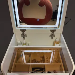 nice and compact if I had anything bad to say about it, I wish the mirror slowly went down on its own Being that heavy, I feel like it could break. I wish you could put your legs on underneath it when you're using it, but you can't unless you're really really short, other than that I like it