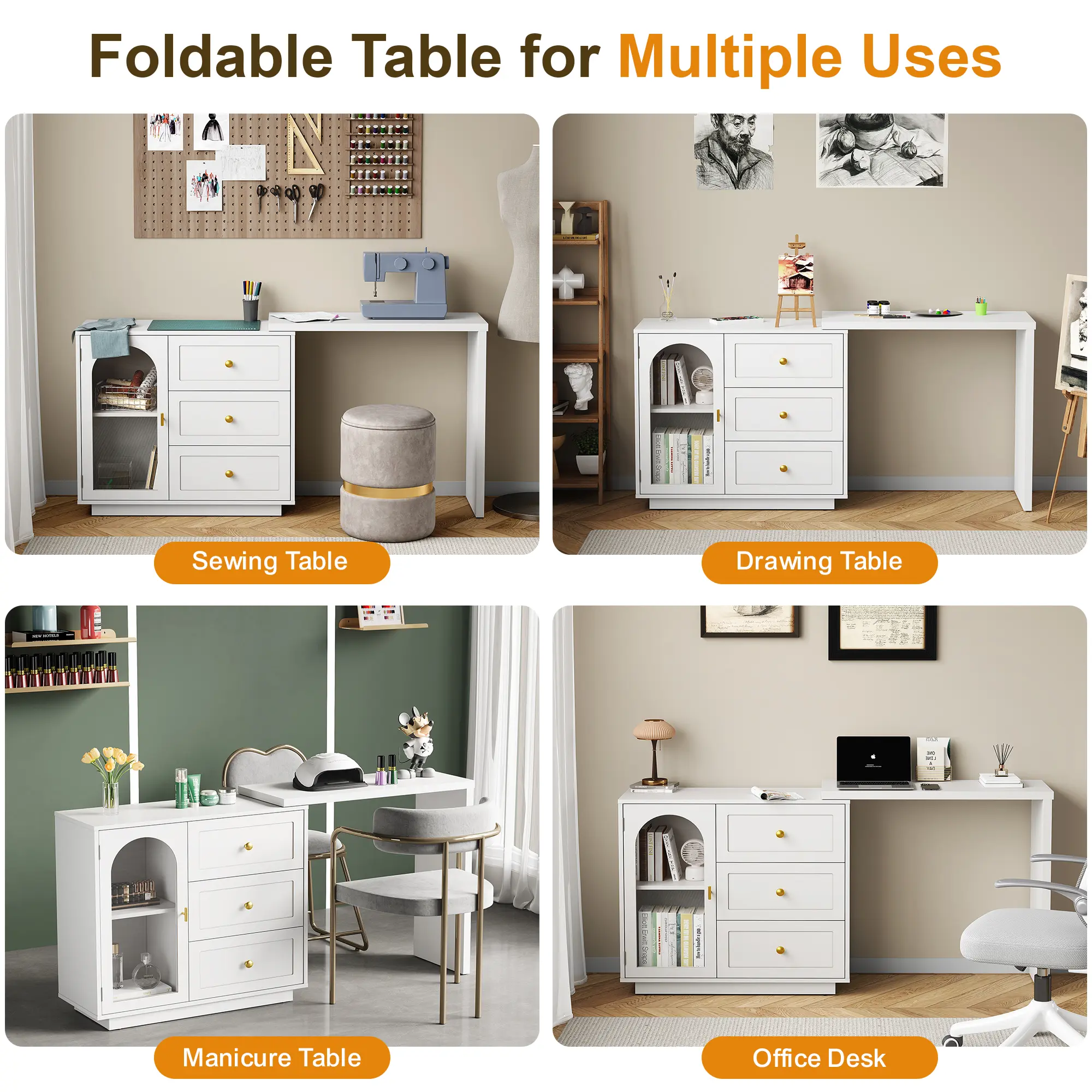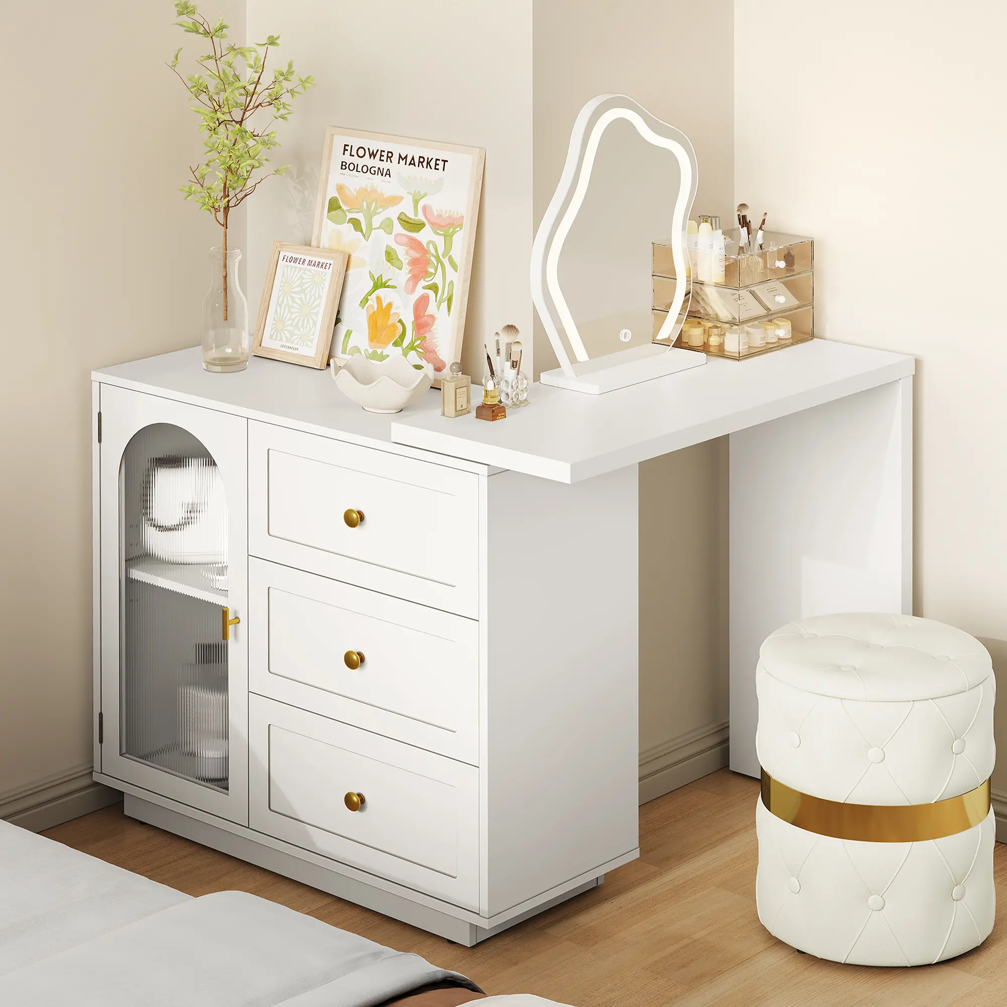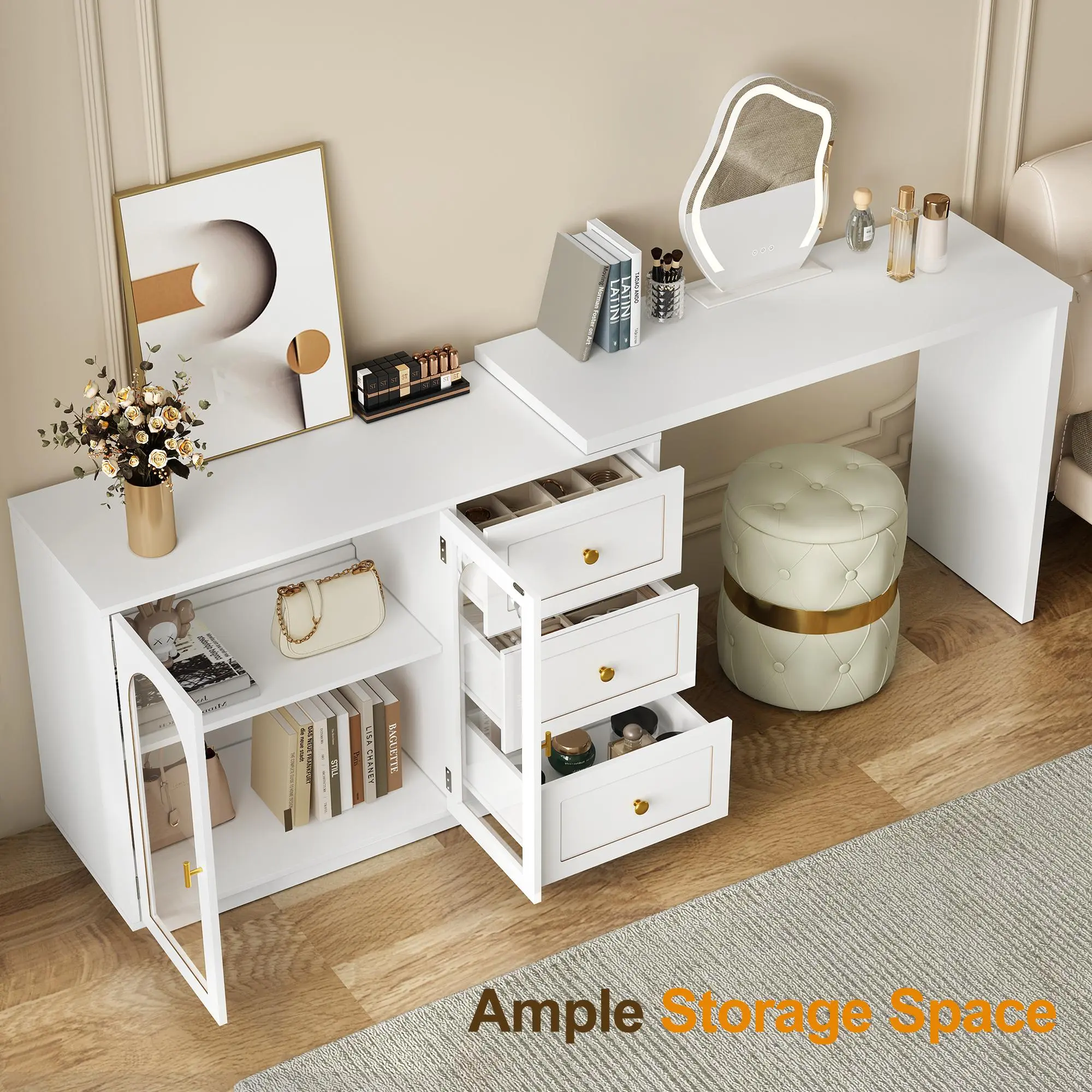 ·59” Extendable Vanity Desk:Measuring 59"W × 14"D × 30"H, this large 59" vanity is ideal for homes, apartments, home offices, and dorm rooms. Its thoughtful design maximizes space while offering efficient organization and an elegant experience. We also offer an 83" size option, perfectly suited for different spaces to meet your varying needs.