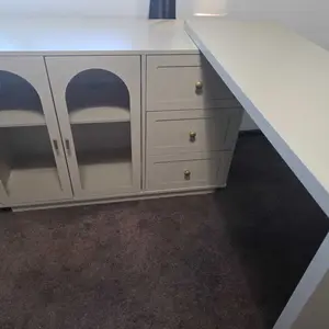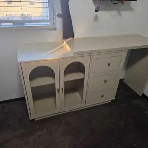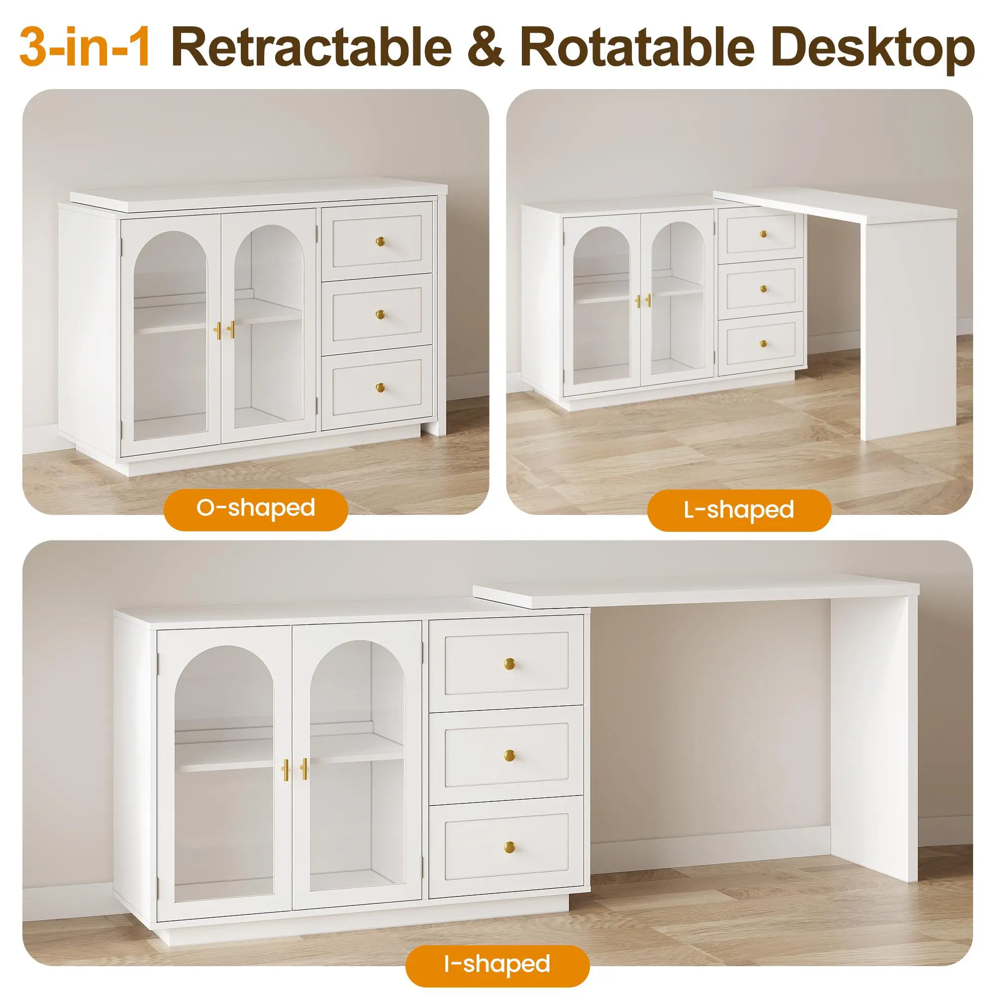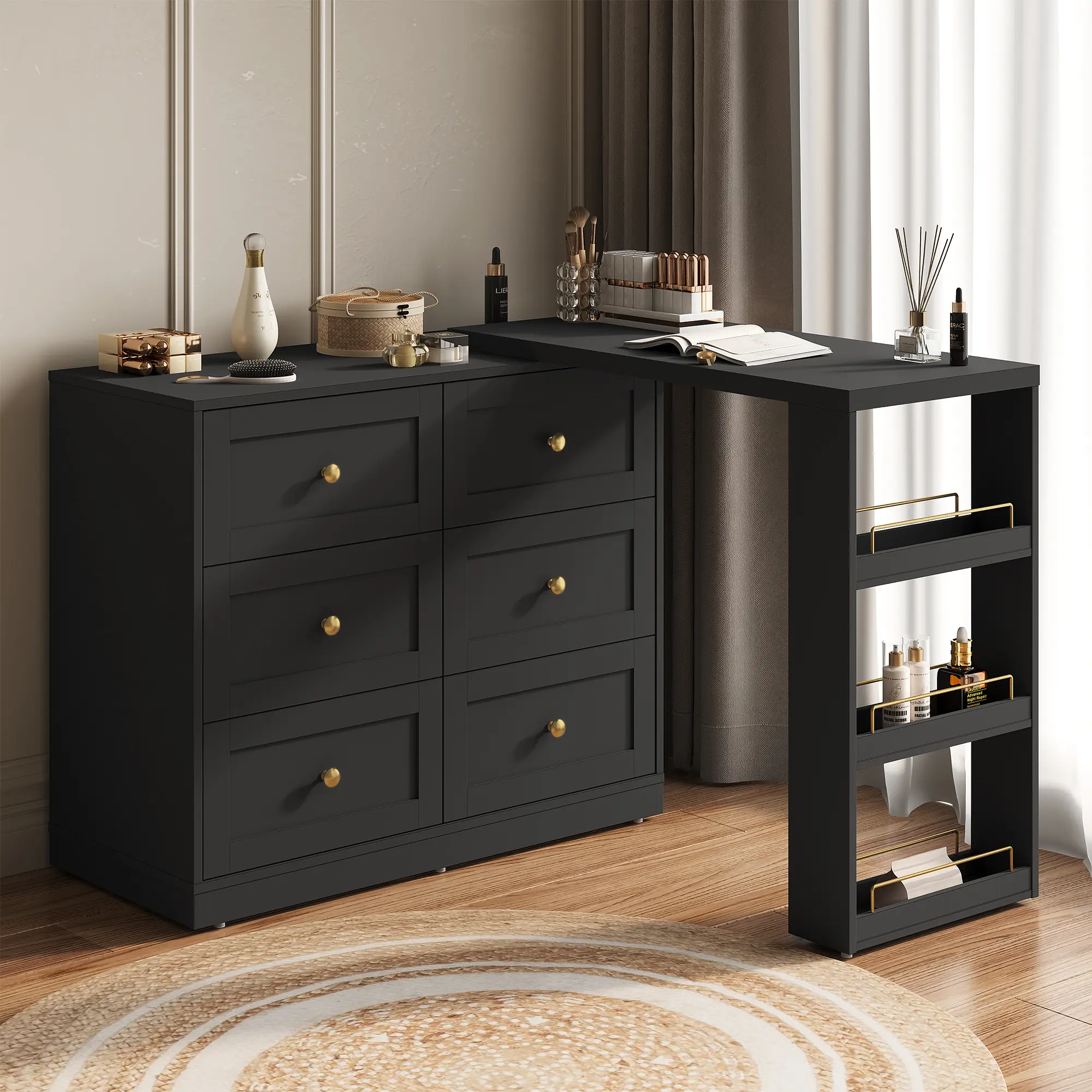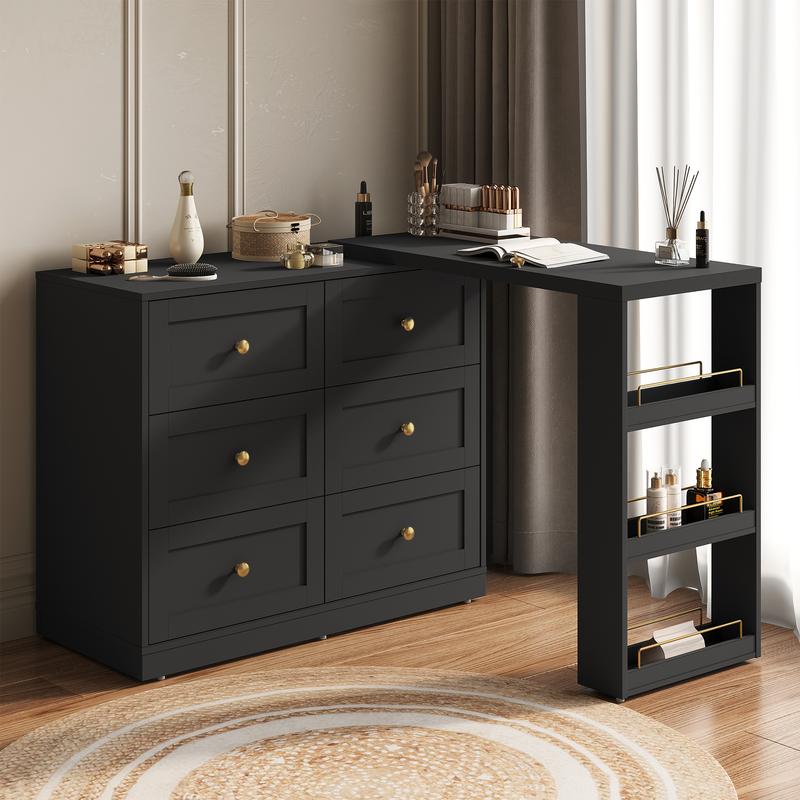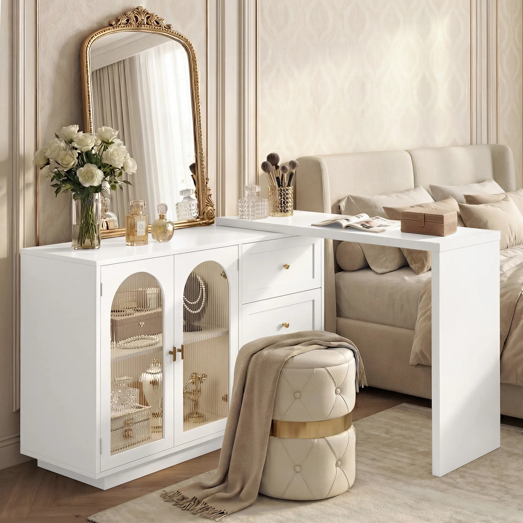 ·Versatile 3-in-1 Design: The L-shape layout maximizes the vanity’s size, ideal for placing at the foot of the bed as a bedroom TV stand or footboard cabinet. The L-shape layout is perfect for corner spaces, functioning as a writing desk or corner console. The O-shape option transforms the piece into a stylish chest of drawers or side cabinet, perfect for use as an entryway or sideboard cabinet. With this adaptable design, you can easily customize the layout to fit your home and lifestyle.