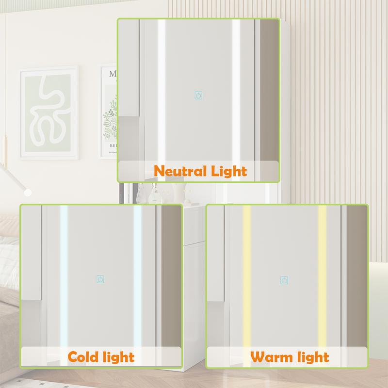 ·[Adjustable Lightning] – The mirror of vanity desk provides 3 different colors and brightness adjustment. To suit different usage and scenarios, you can simply click the LED sensor button to operate the switch. Short press for color adjustment, long press for brightness adjustment.