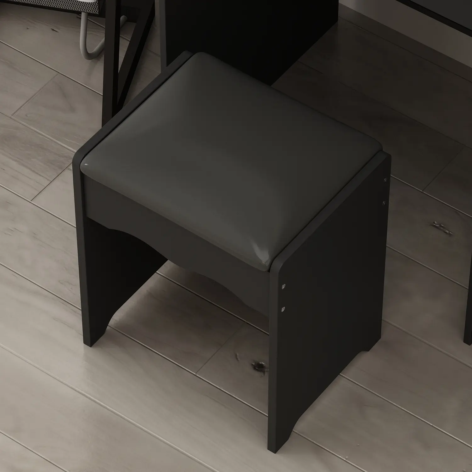 This makeup vanity set comes with a cushioned stool. The seat is filled with elastic sponge and covered with PU leather to offer a comfortable experience. The comfortable vanity bench with proper height can be placed under the vanity table