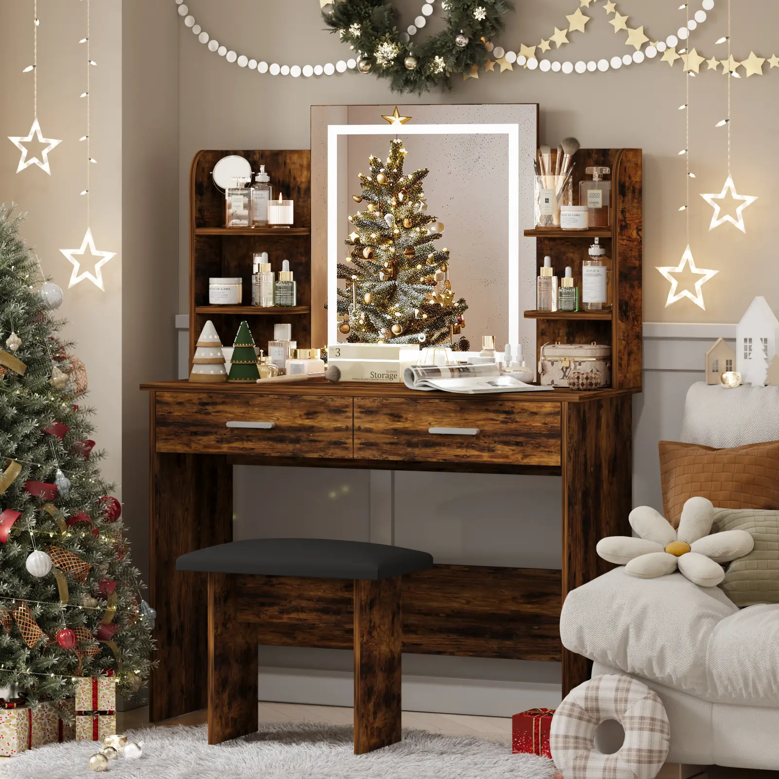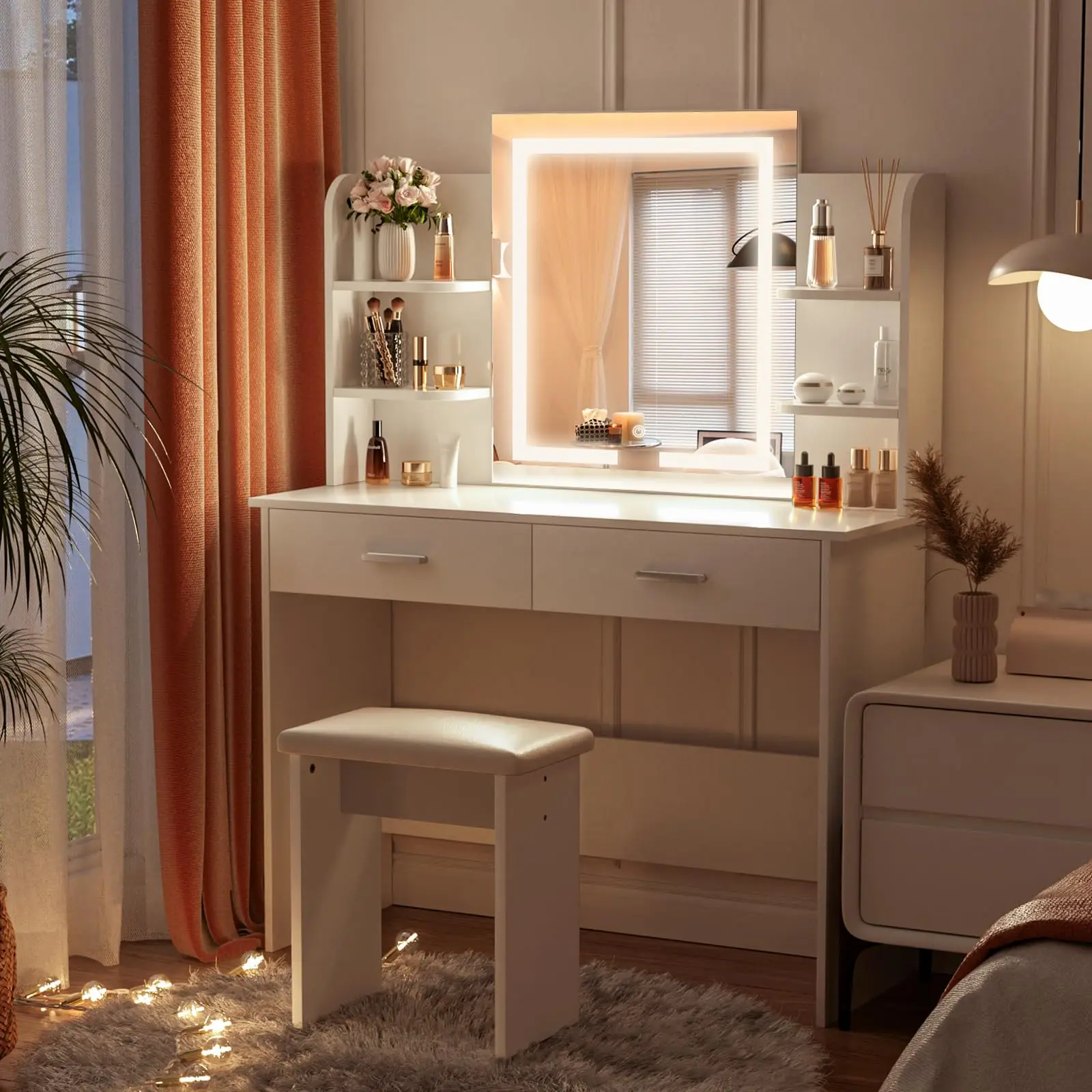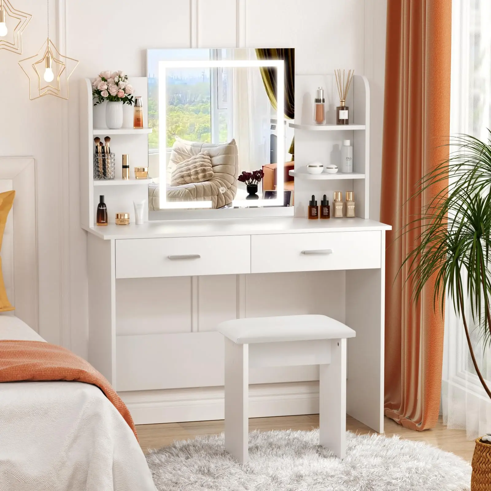 I love thiss it’s so cute I had my husband build it for me and it took a couple of hours but other then that I’ve been using it everyday to do my makeup and hair and I live in an apartment so my rooms small and it fits perfectly and doesn’t take up much space ❤️