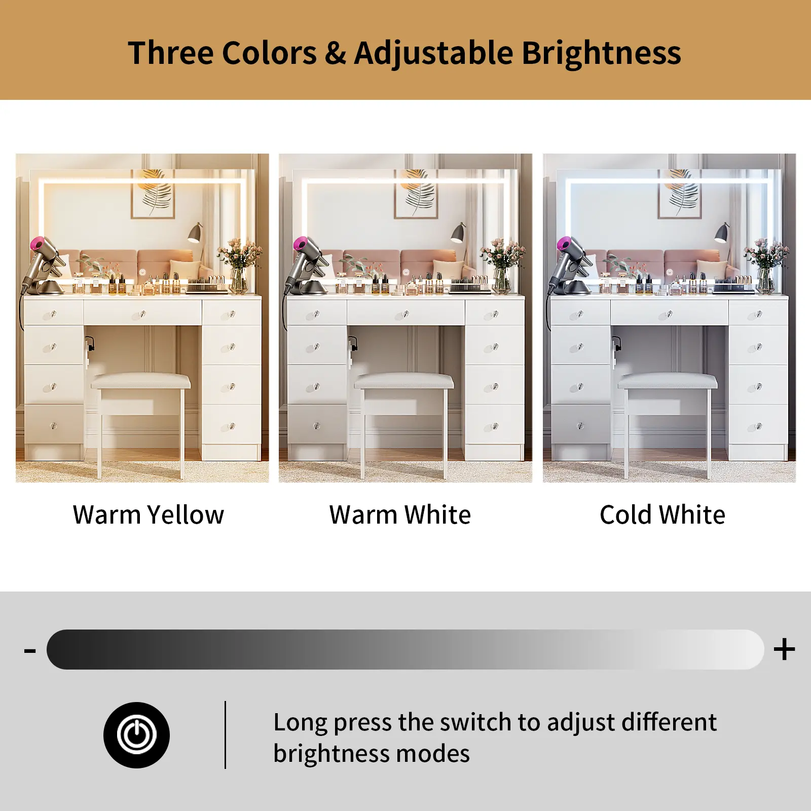 ◆Bright and Adjustable Lighting: This makeup vanity features built-in LED light with 3 color temperature modes and adjustable brightness, providing you with professional-quality, adjustable lighting for your daily makeup routine.