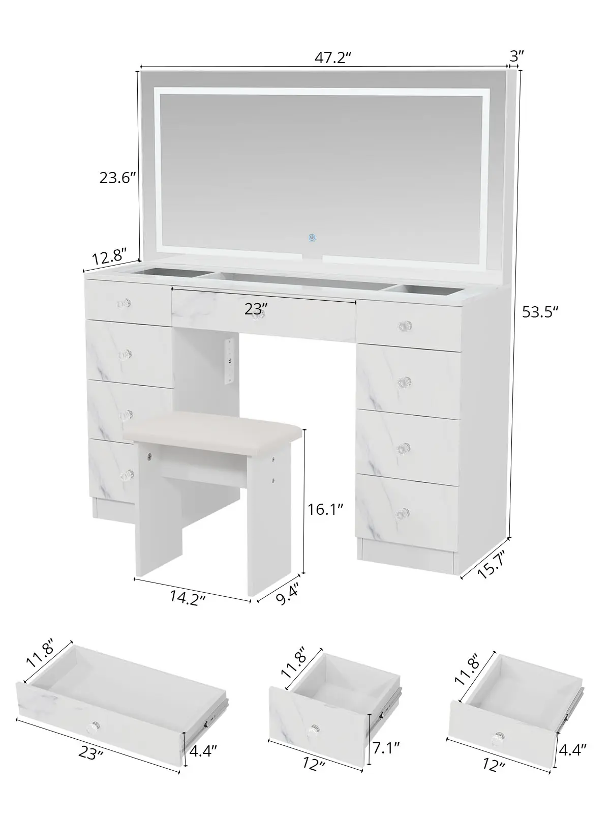 ◆Super Storage: Our vanity desk features 9 large drawers and spacious desktop to store all your beauty essentials.