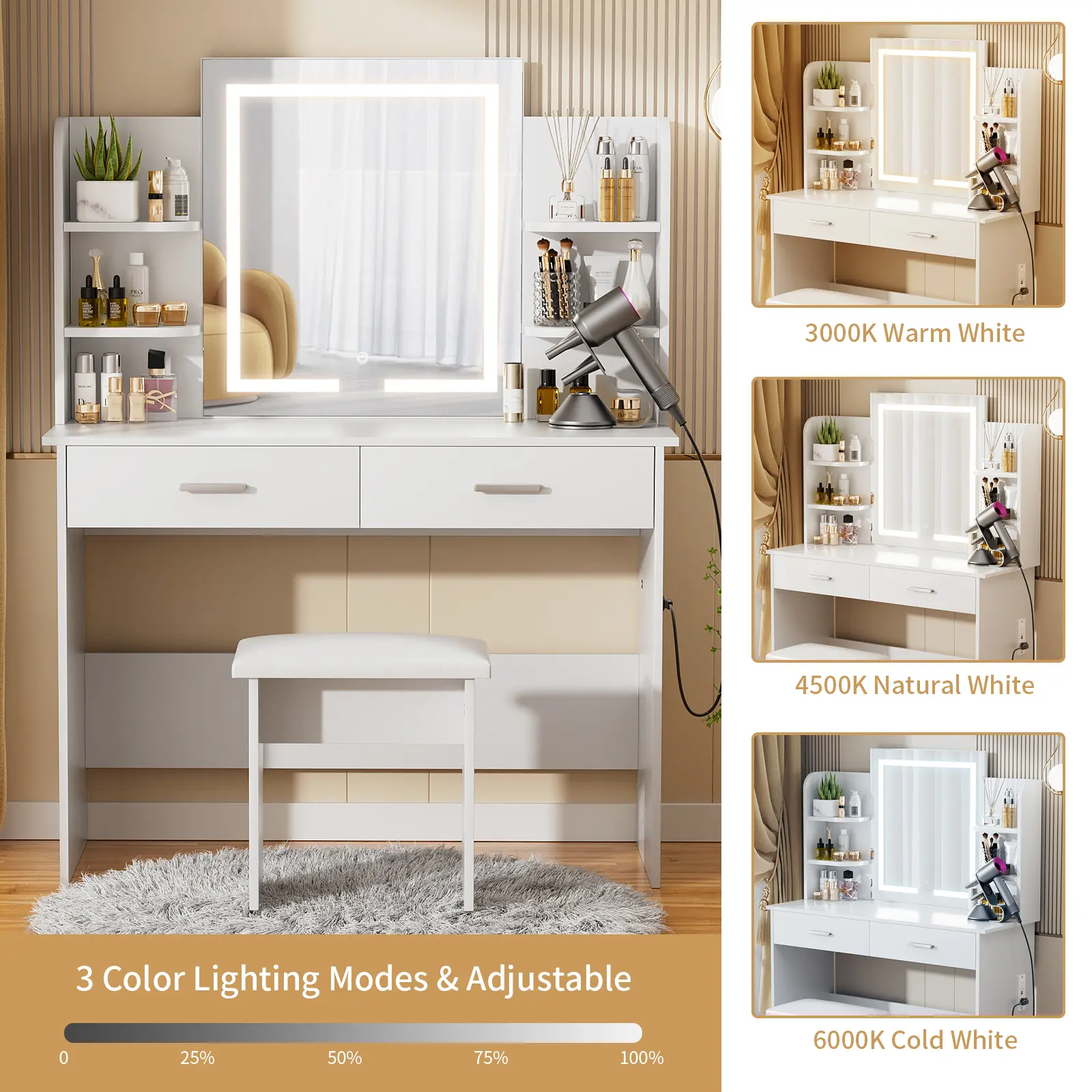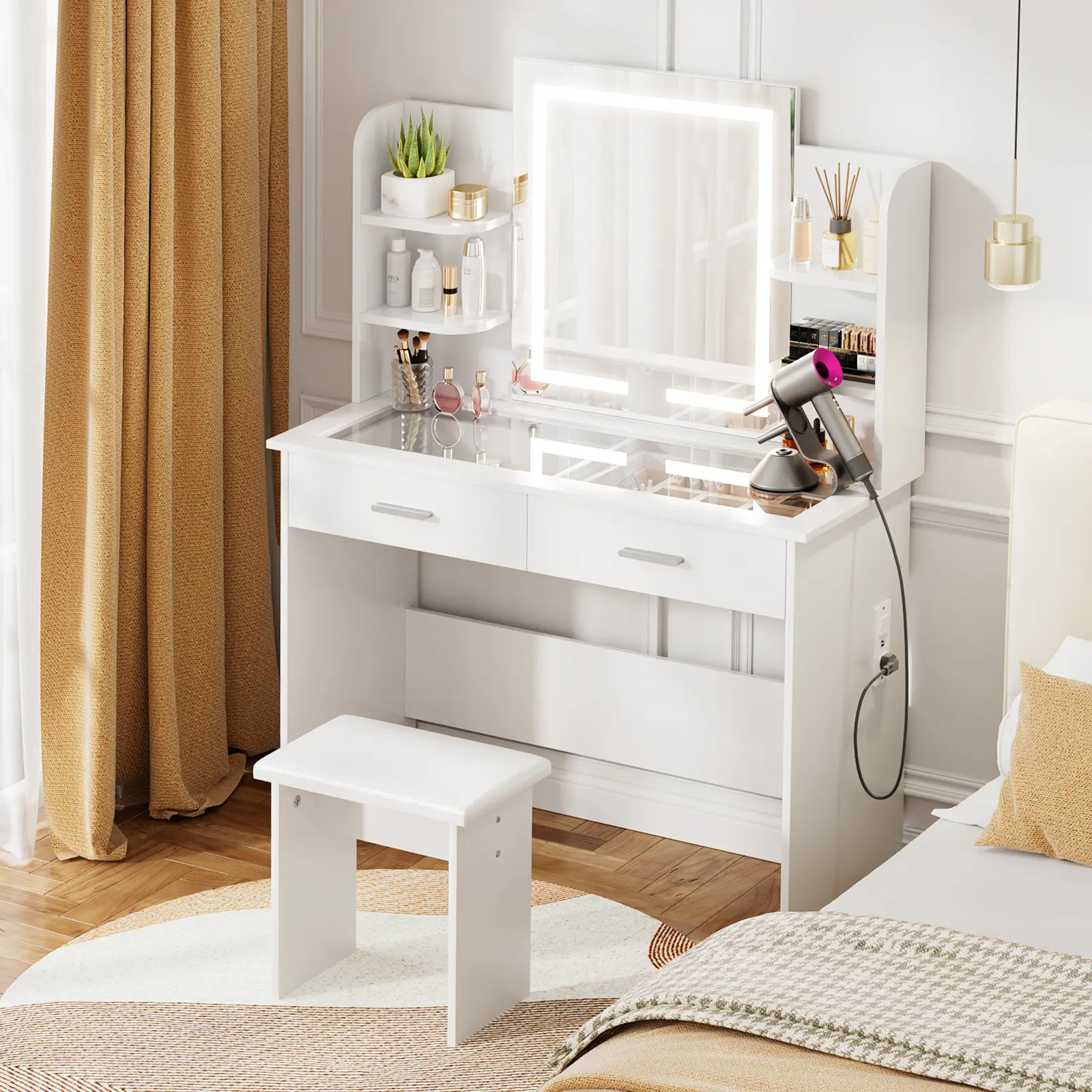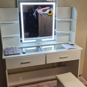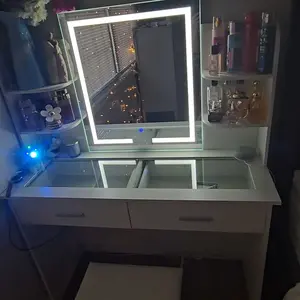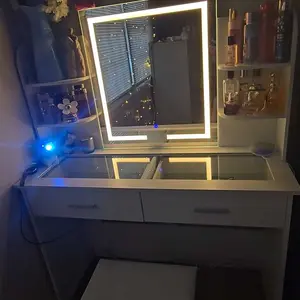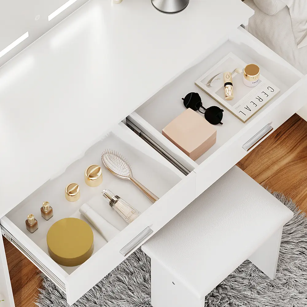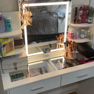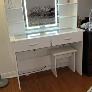This vanity is beautiful and so simple to build! I thought I was gonna need help but the instructions are VERY easy to read. Is had a lot of space inside and the shelves are cute for plants and stuff. The mirror has amazing lighting and is super big, great desk