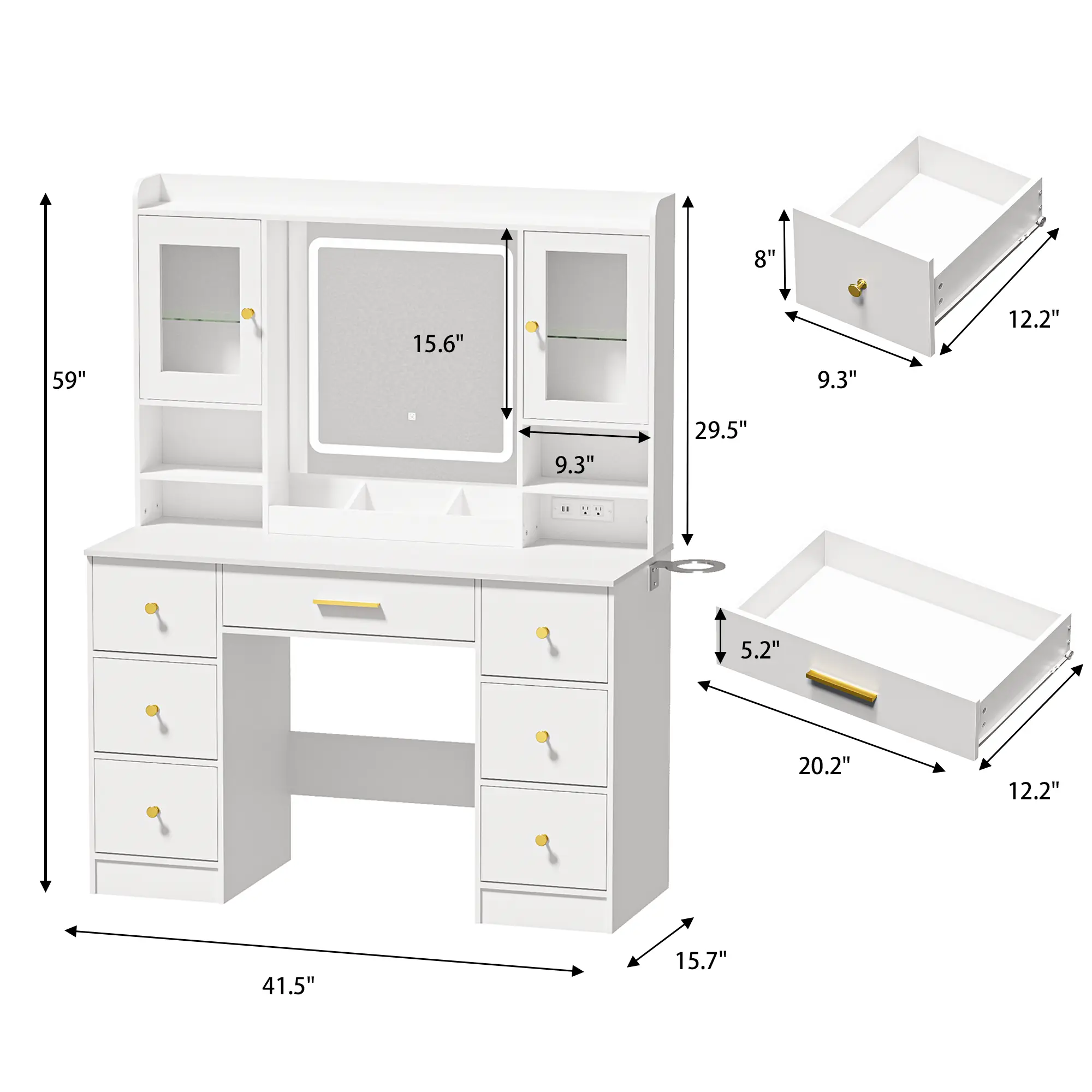 The wider desktop includes 1+6 drawers and 2 open storage areas. It also features 2 RGB cabinets for ample storage. Keep your desk clutter-free by sorting items according to your preference. Perfect size for bedrooms and dressing rooms: 39.4”(L)15.7”(W)58.7”(H).