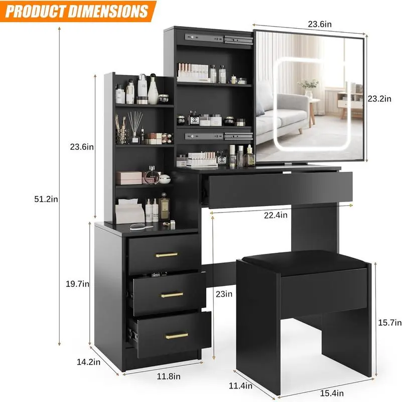 [Ample Storage Solutions] - Designed for orderly living, our makeup vanity desk set features 4 spacious drawers, 4 open exhibition shelves, along with a 3-tier concealed section behind the mirror. Simplify the organization of your beauty products, daily necessities, and trinkets with refined ease.