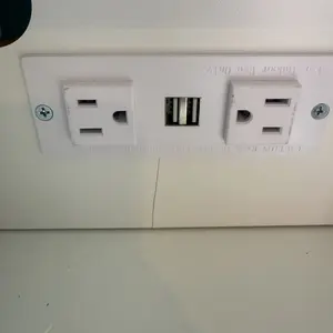 A power strip including 2 USB-A Ports and 2 AC Outlets is built into the backboard so it frees up desktop space for more private items.