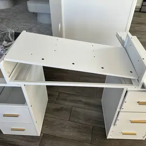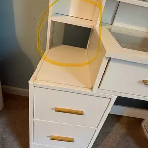 The vanity set boasts 7 shelves, 8 spacious drawers and nightstand areas, which hold all your cosmetics, styling tools and other beauty essentials, all at arm's reach.