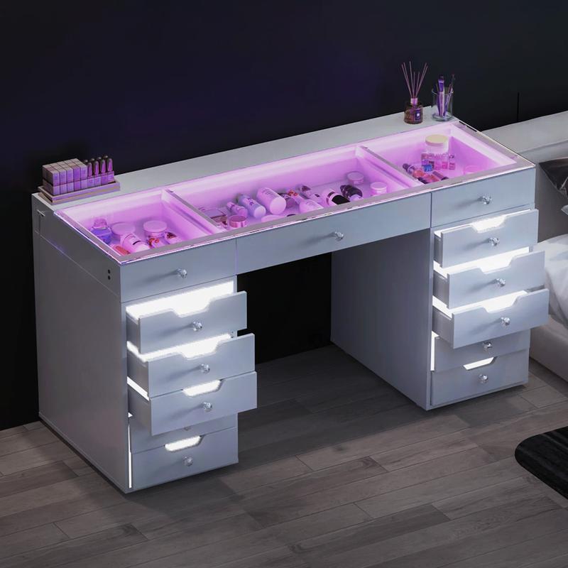●!!!!!!Tips:If you want to buy a vanity table drawer with LED lights, please choose the one that has the Drawer With Lights option, the others that do not have the words Drawer With Lights are the ones where the drawer does not come with LED lights. Any option of the table top comes with LED light strips, the only difference is the difference I mentioned above.