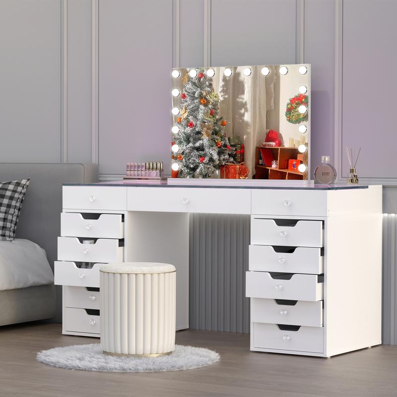 ●13 Drawers of Different Sizes: Featuring 13 drawers of different sizes, this vanity table offers versatile storage solutions to organize all your cosmetics, skincare products, accessories, and more. The varied drawer sizes allow you to keep everything neatly arranged and easily accessible.