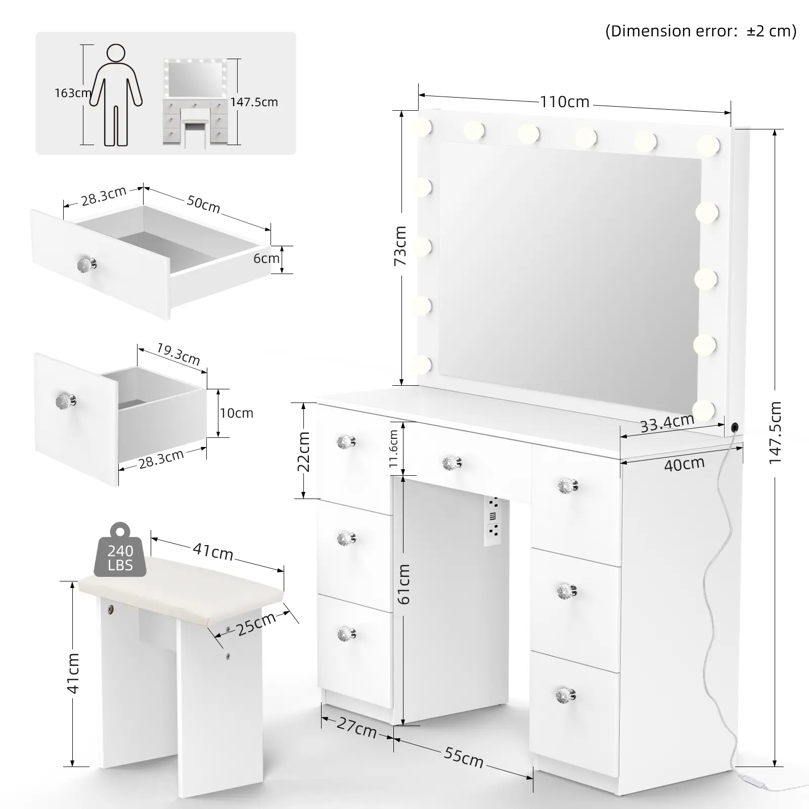 ◆Perfect Gift Idea: With its classy looks and practical design, this vanity makes an ideal gift for your wife, daughter or friend on birthdays, holidays, and special occasions.