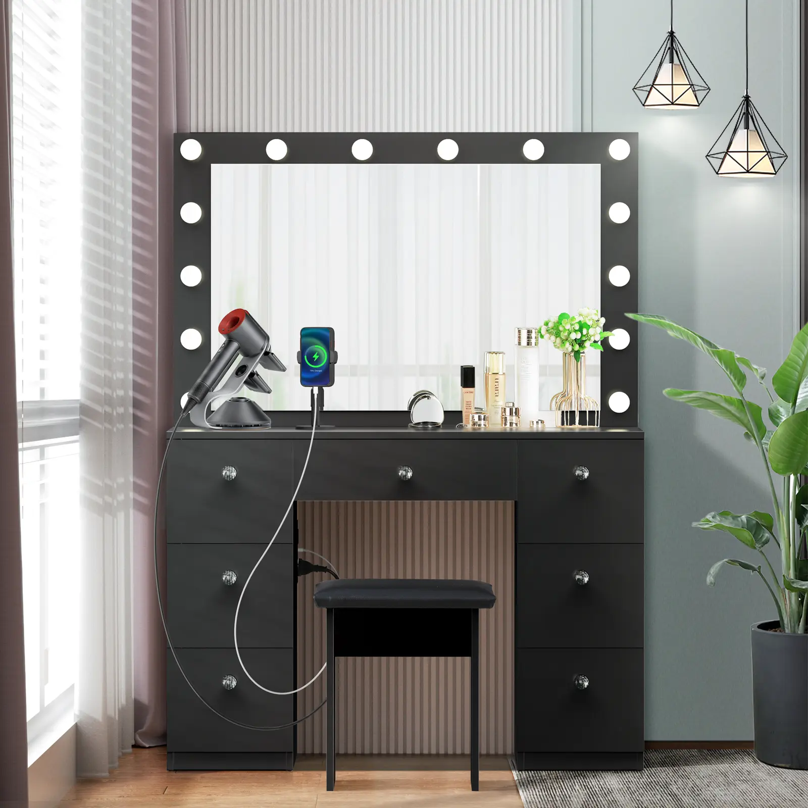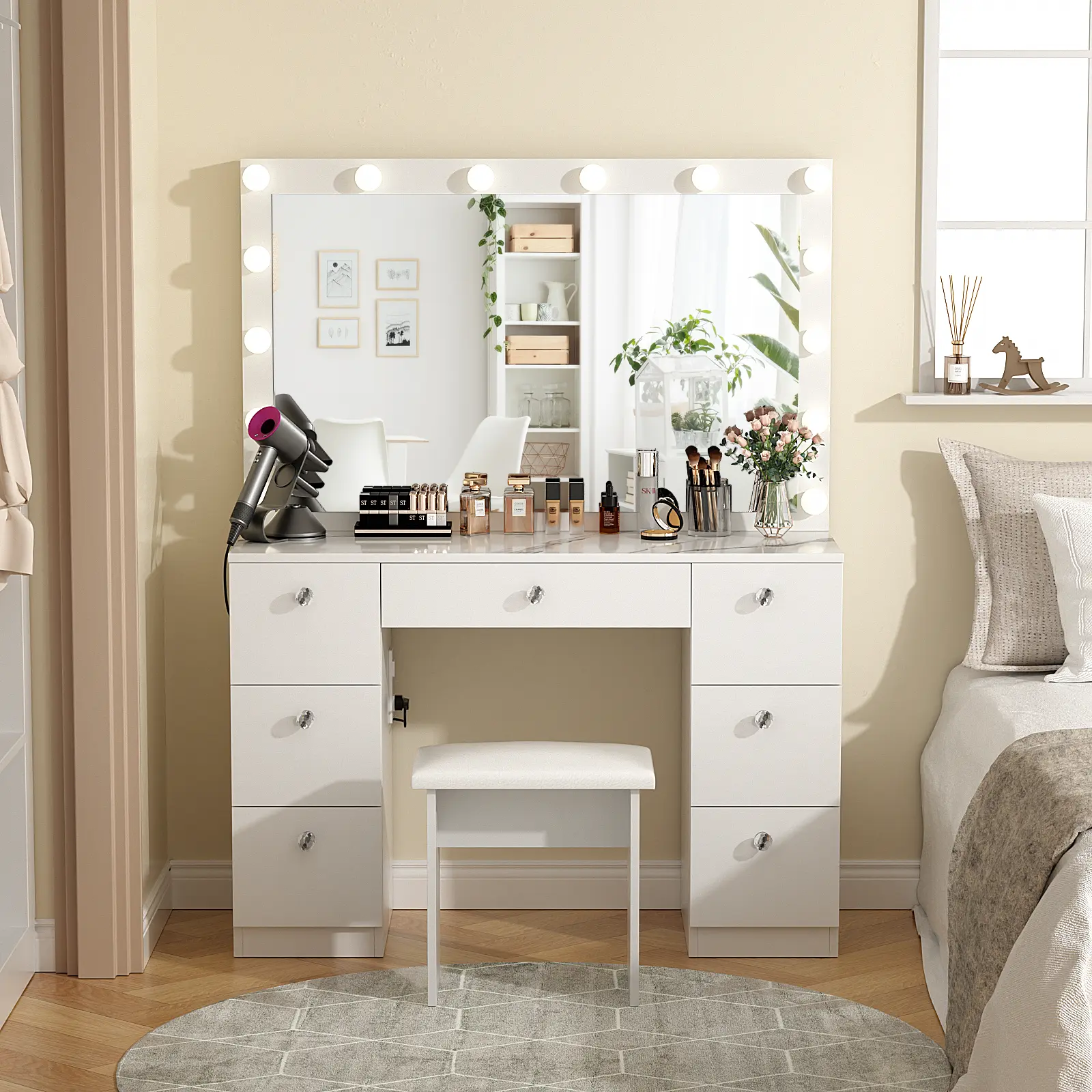 ◆Super Storage: Our vanity desk features 7 large drawers and spacious desktop to store all your beauty essentials.