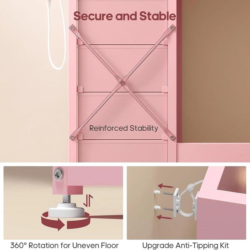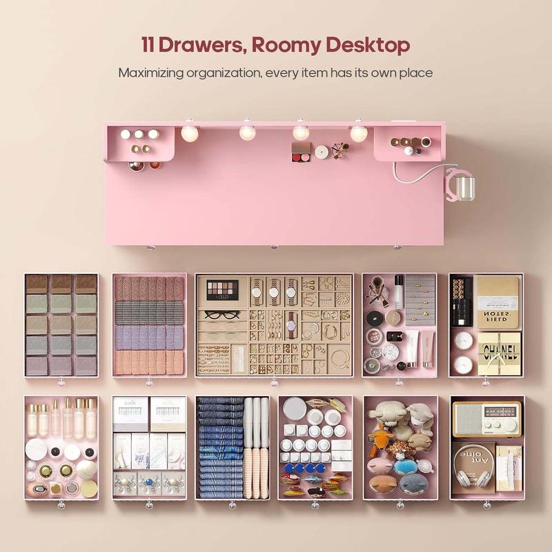 Makeup Vanity with 11 Drawers and 6 Open Shelves Pink
