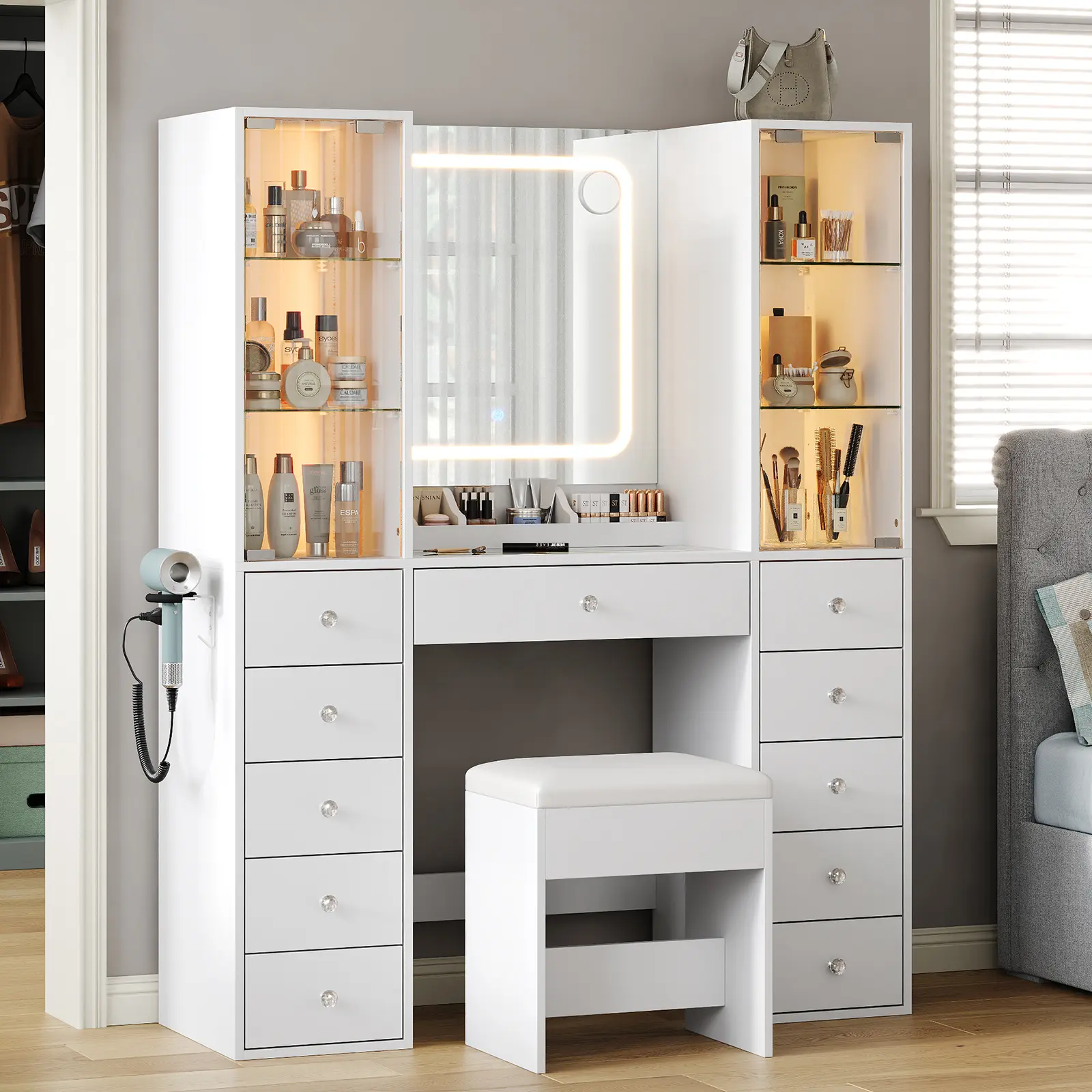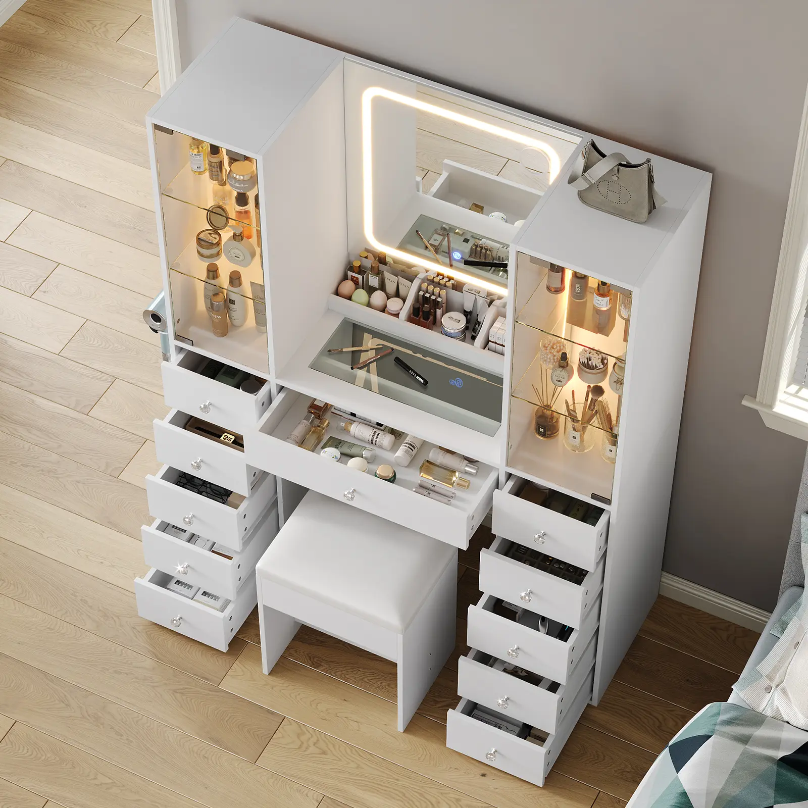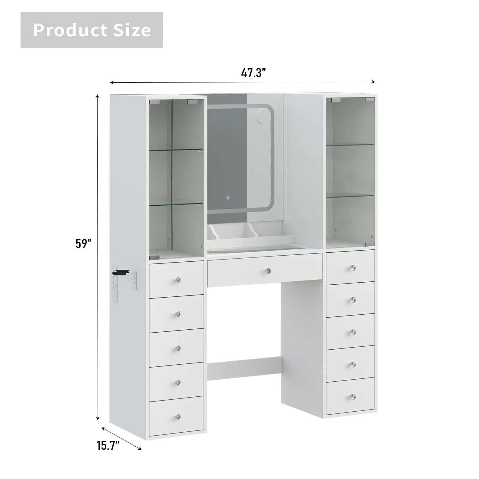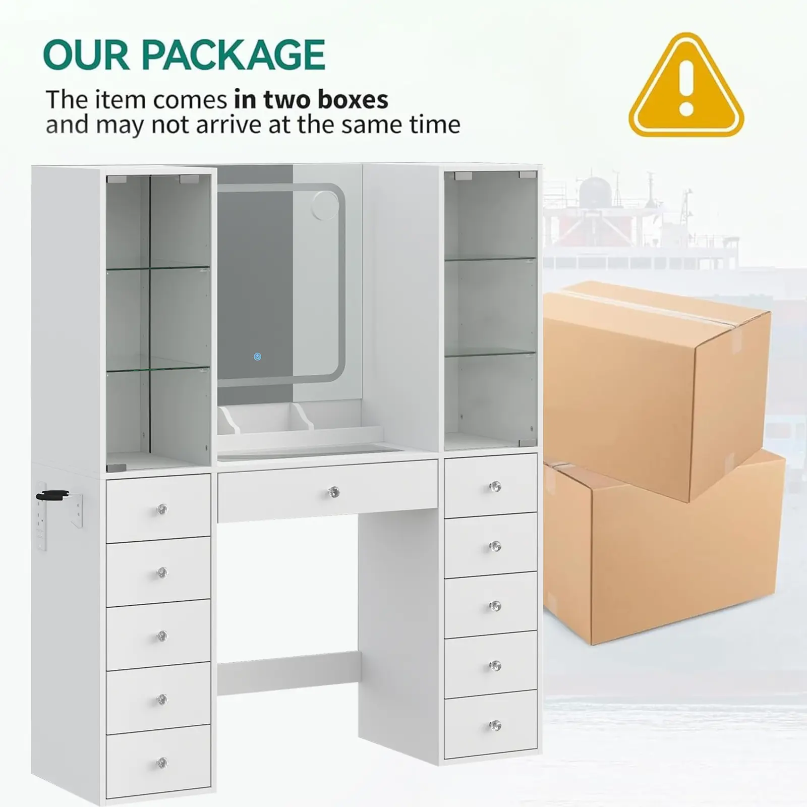 ·Massive Storage & Sleek Organization: Never clutter your space again! 12 large makeup sliding drawers and 2 lighted storage cabinets make your makeup environment well-organized, there are adjustable shelves inside the cabinets, you can adjust according to your needs. This vanity can hold all your cosmetics perfectly! Keeping everything visible and within reach