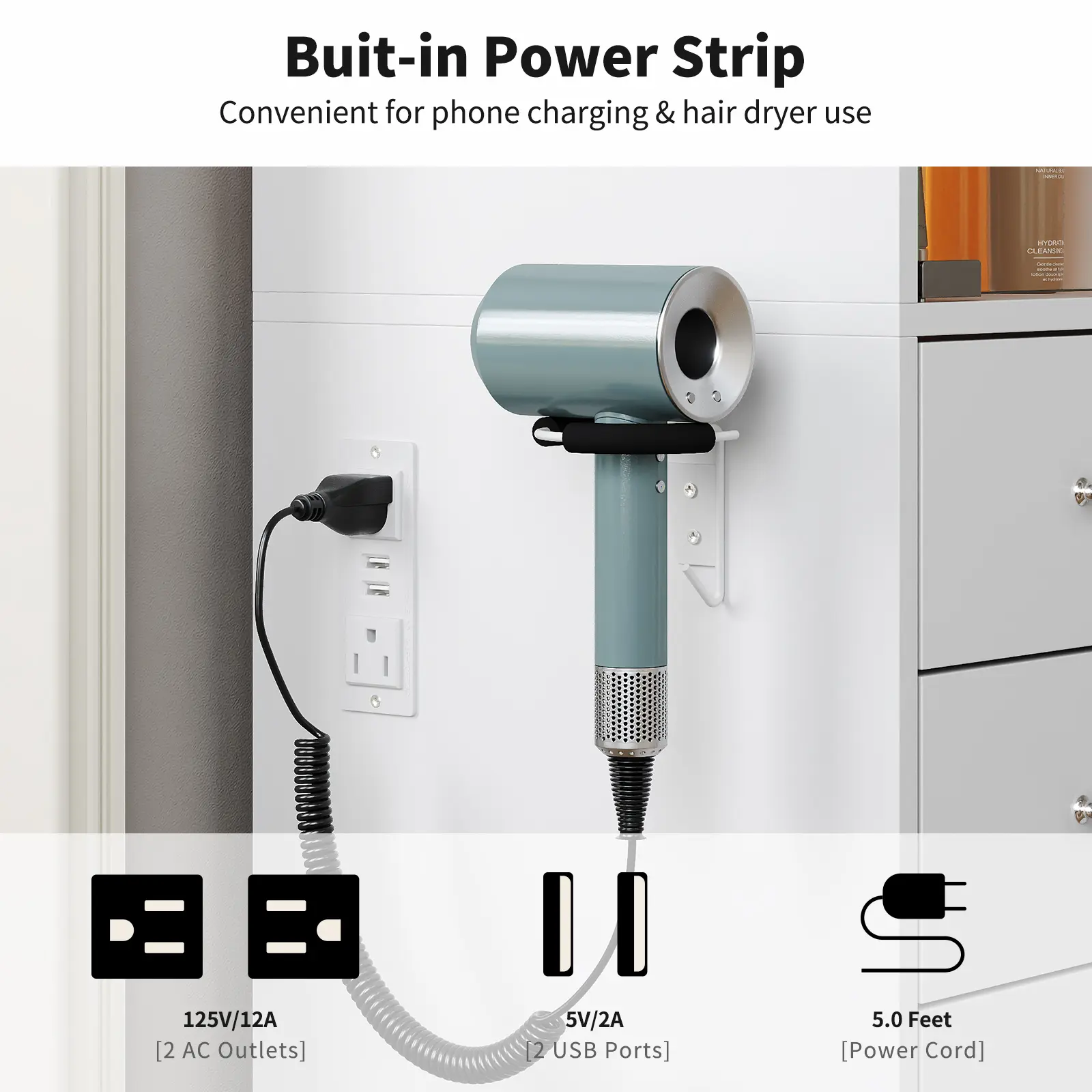 ·Built-in Power Station: This vanity desk comes with a hair dryer stand and charging station. Including 2 AC outlets and 2 USB ports, so you can easily charge your phone, tablet, or plug in styling tools like hair dryers and curling irons, no more messy cords!