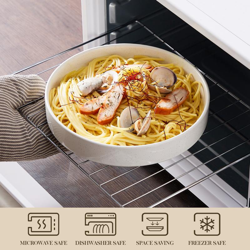 The right-angled bowl base design allows for stackable storage in cabinets. The frosted bowl base not only increases friction to prevent stacked bowls from accidentally falling, but also enhances visual appeal, adding a touch of modern artistic beauty to your kitchen.