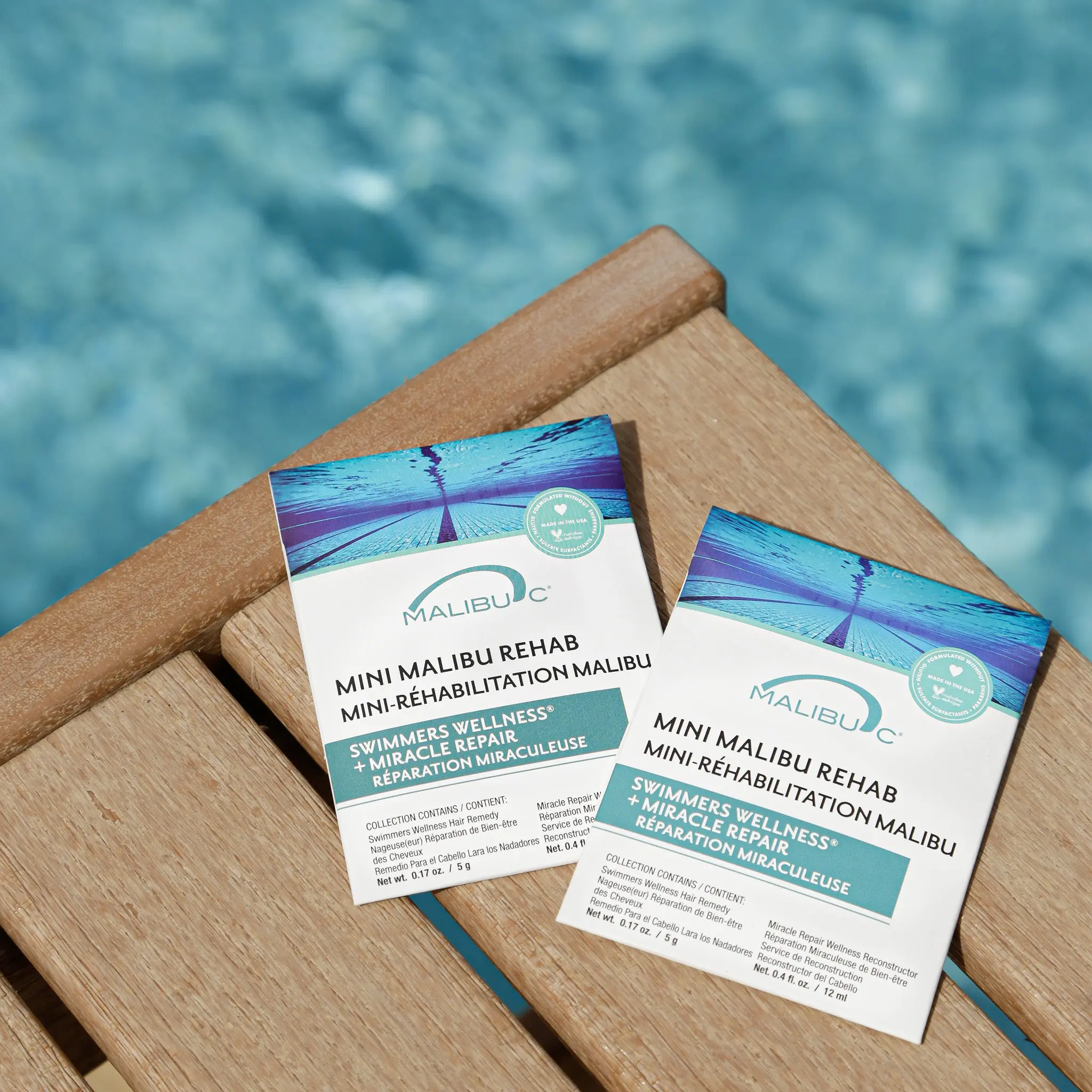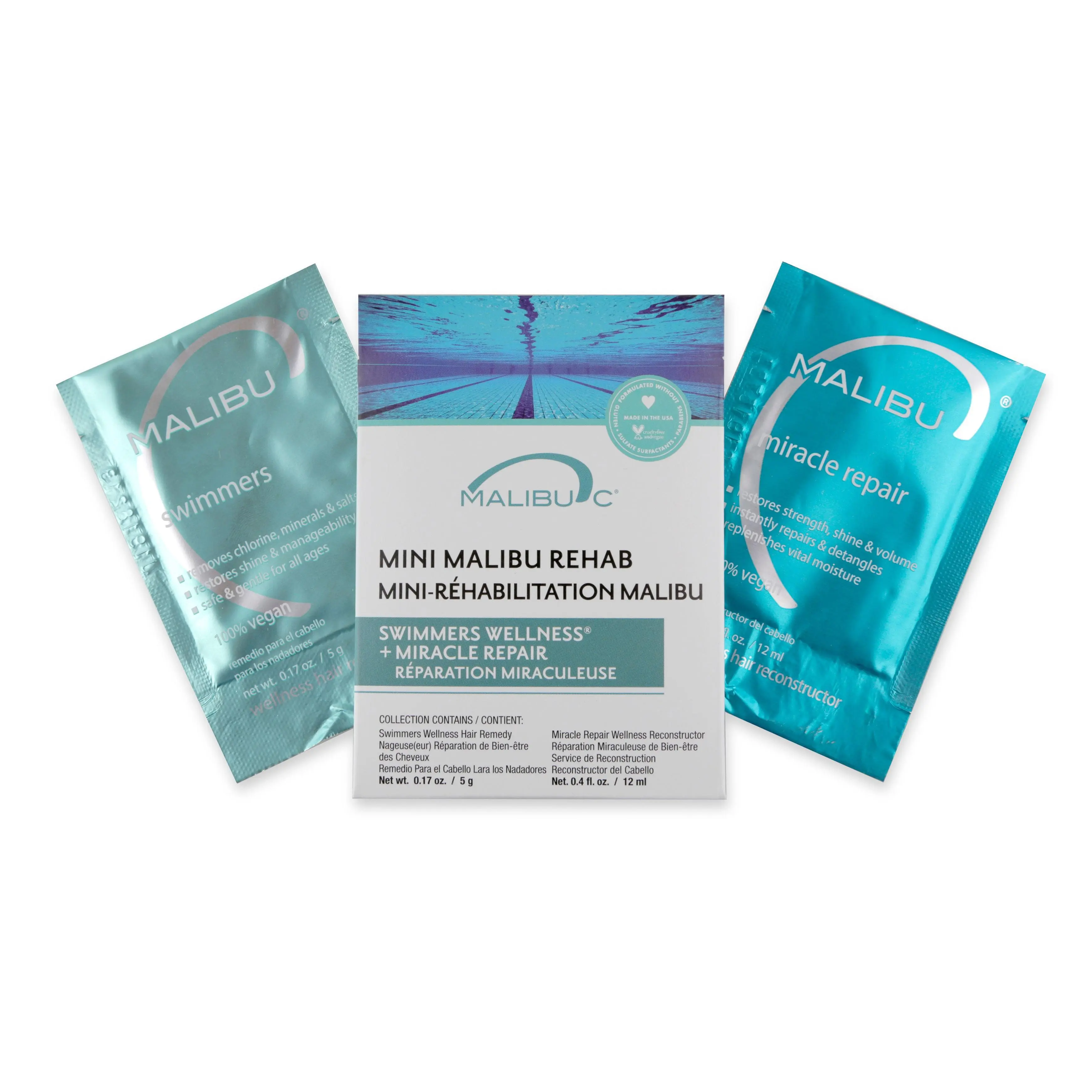 Malibu C Mini Malibu Rehab Swimmers Wellness - Contains 2 Hair Remedy Packets - Discoloration Correcting Hair Care for Swimmers - Restores Hair Shine & Moisture