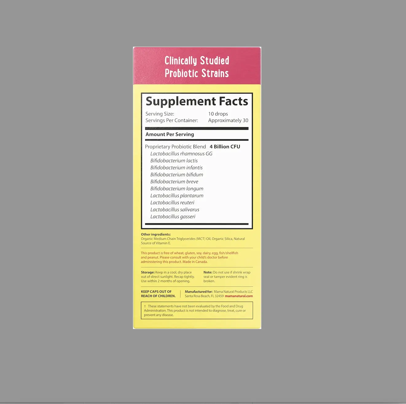 No artificial preservatives, no junk. This clean-label liquid probiotic is made without gluten, dairy, soy, peanuts, or GMOs. Produced in a GMP-certified facility in Canada for top-tier safety and quality. Pediatrician-formulated and mom-approved, these drops support gut and immune health naturally. The Mama Natural Promise ensures satisfaction.