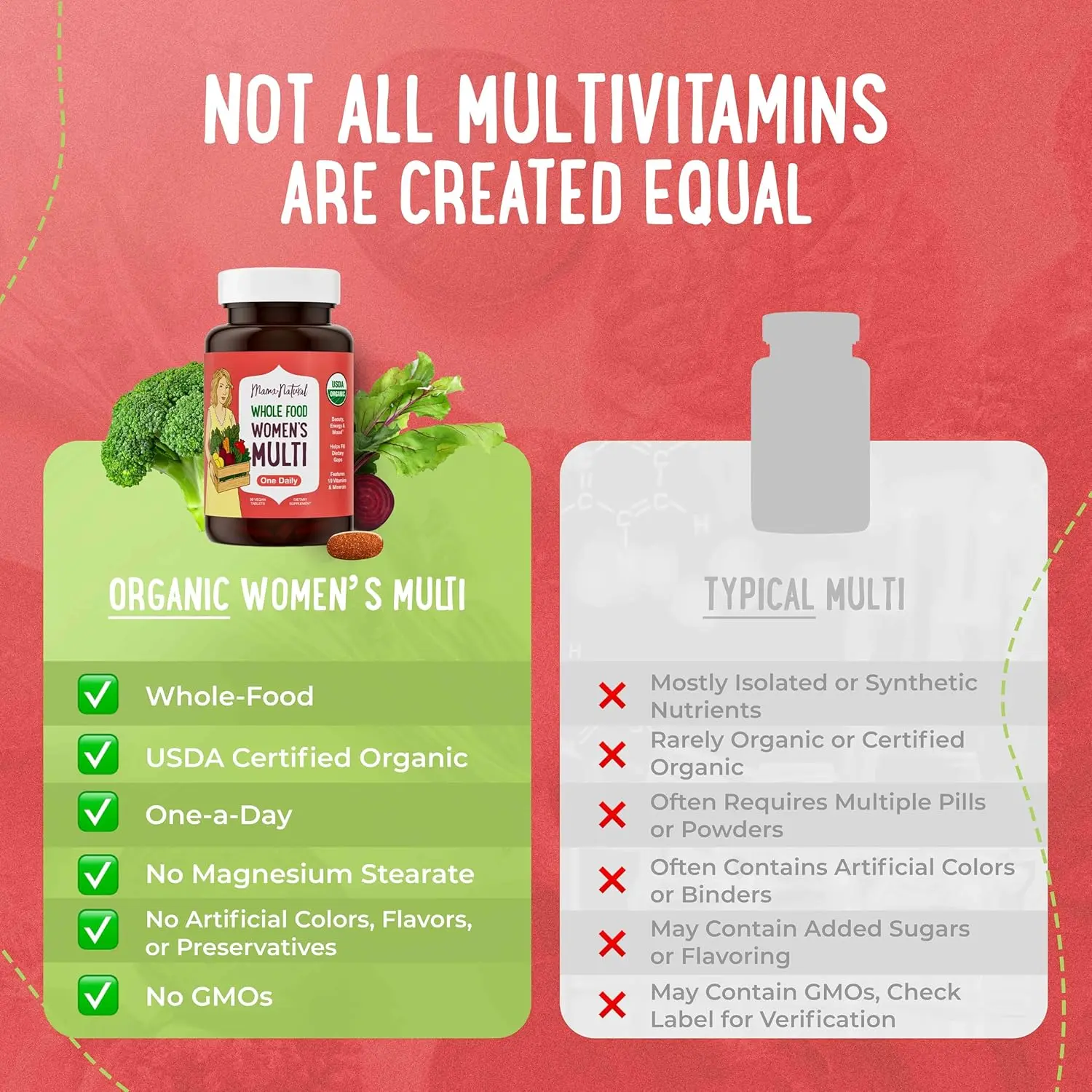 ·Mama Natural Quality – Created by a nutritionist and mom of three, this whole food women’s multivitamin reflects years of trust from millions of women. USDA Certified Organic. Third-Party Tested. Non-GMO. Made in a GMP-certified facility in the USA.*