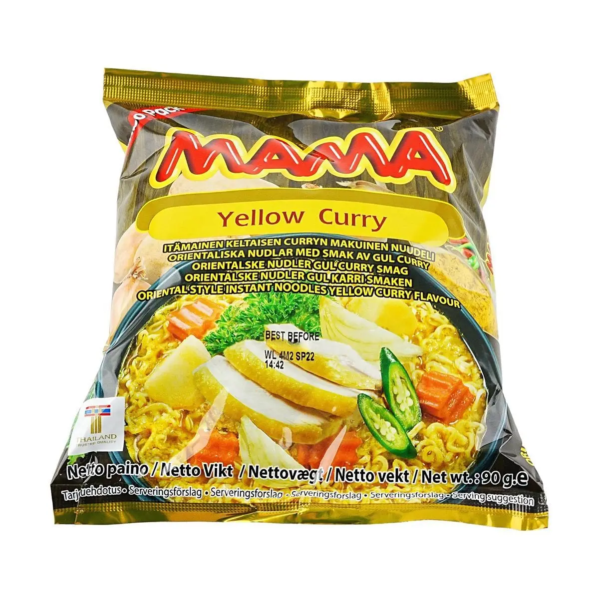 Experience the rich and aromatic taste of Thailand with MAMA's Yellow Curry Instant Noodles. Perfect for a quick meal or a late-night snack!