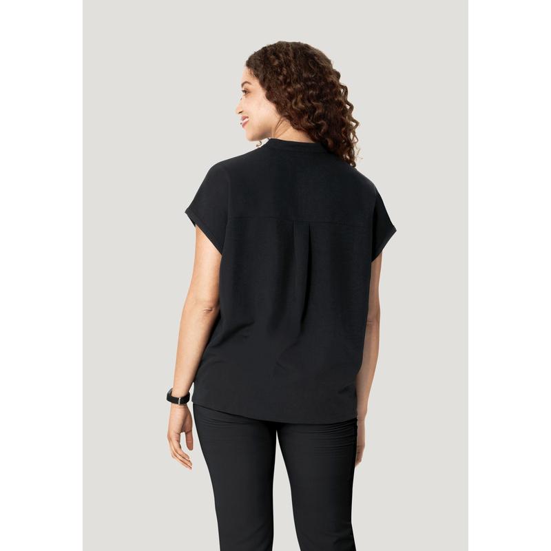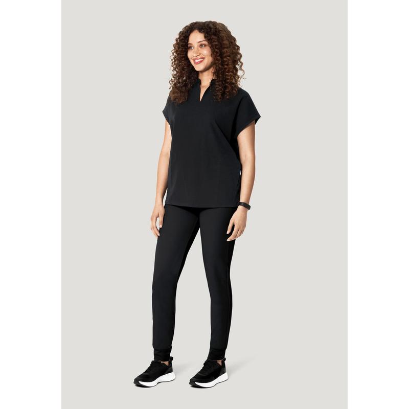 A versatile mandarin dolman scrub top with 4 pockets.