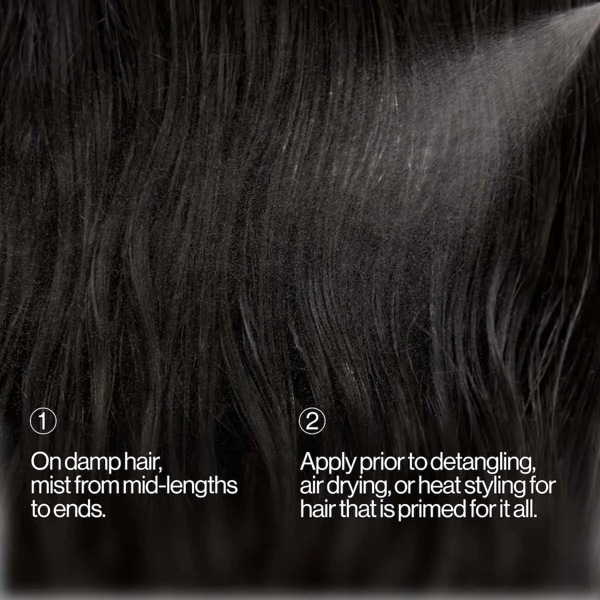 ·On damp hair, mist from mid-lengths to ends