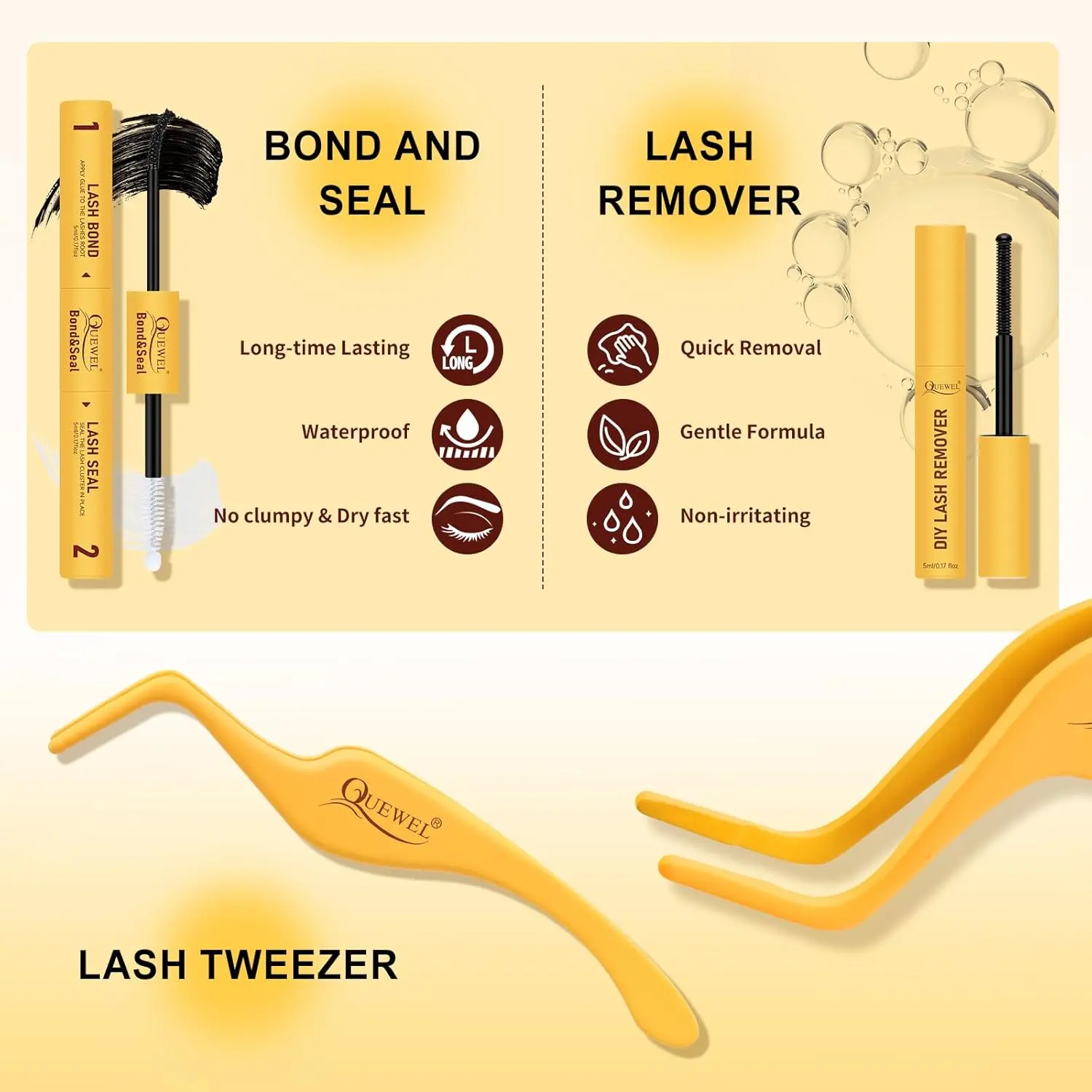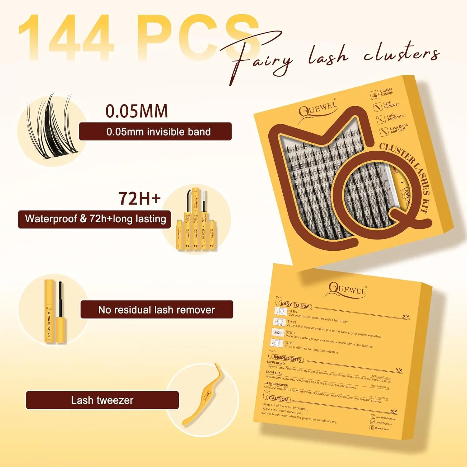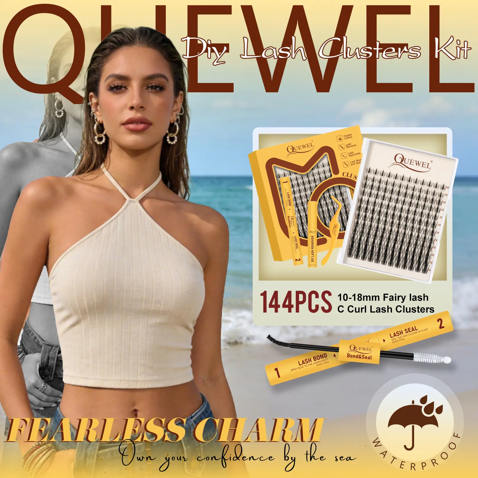 The Quewel Natural Invisible Band Lash Clusters Kit is a premium false eyelash set designed to help users achieve a lightweight, natural manga-style lash effect with ease. Here are the key features and selling points: