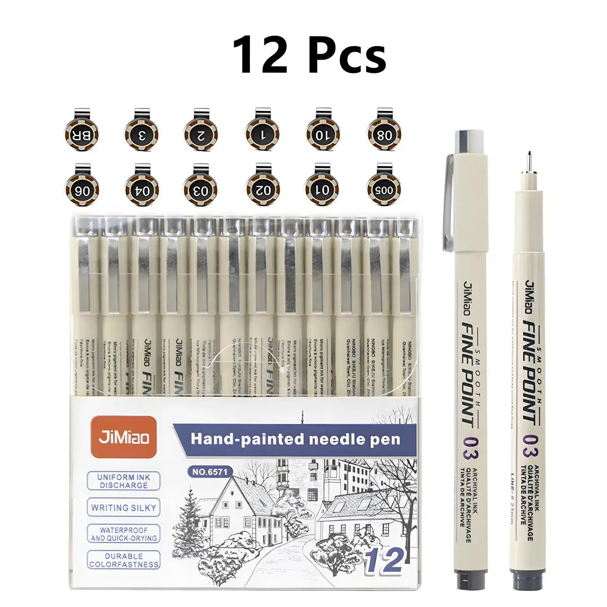 Amazing, lots of sizes and waterproof if you want to watercolor over them. They didn't bleed at all.